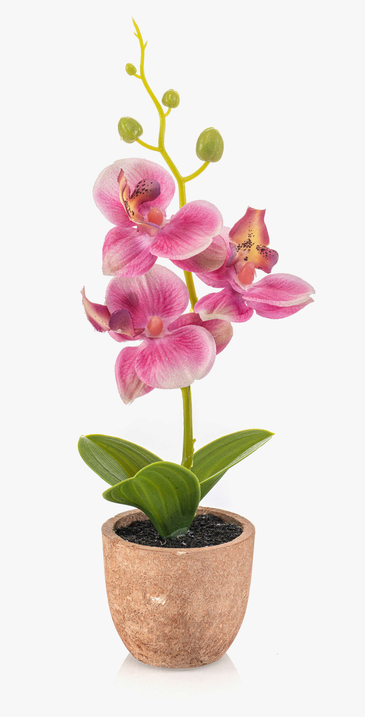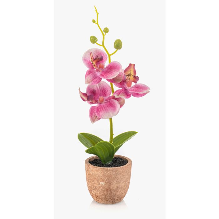 Plastic Phalaenopsis orchid LEONISA in terracotta pot, pink, 8"/20cm