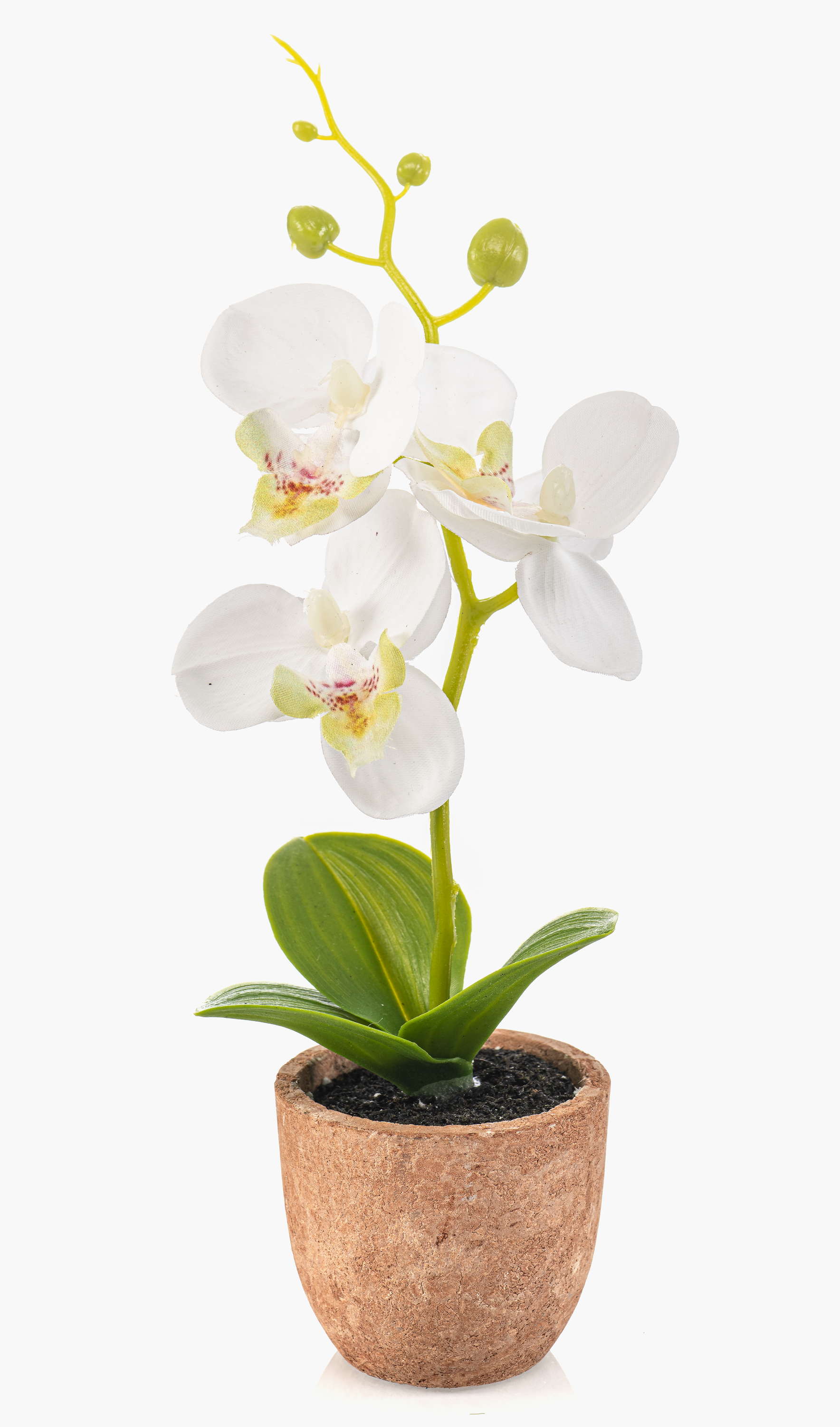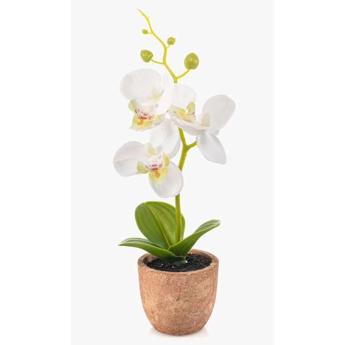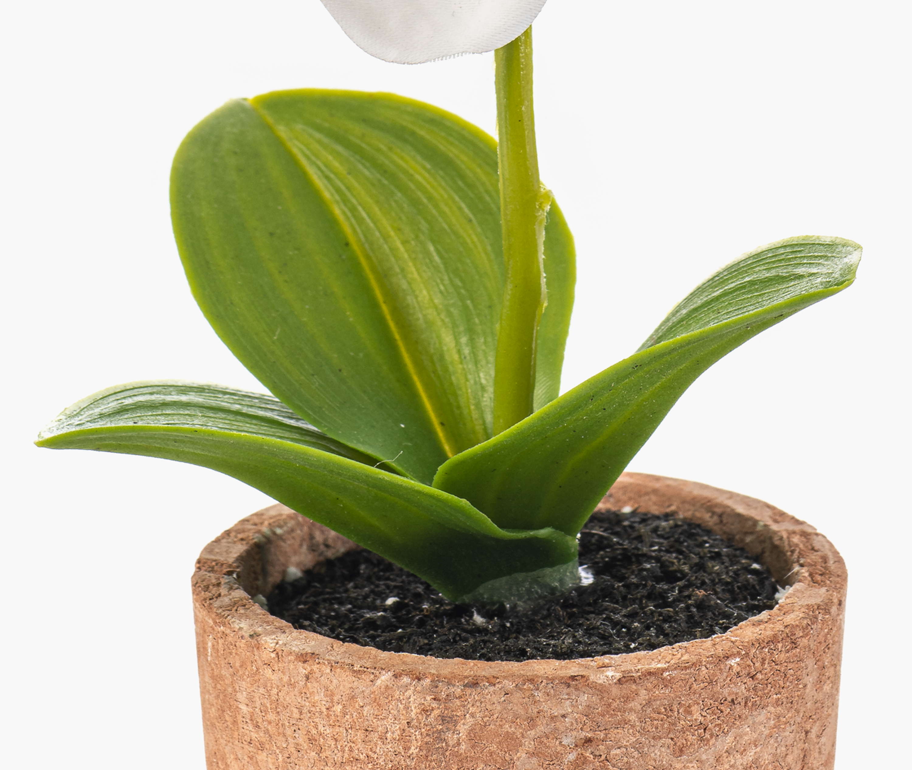 Plastic Phalaenopsis orchid LEONISA in terracotta pot, white, 8"/20cm