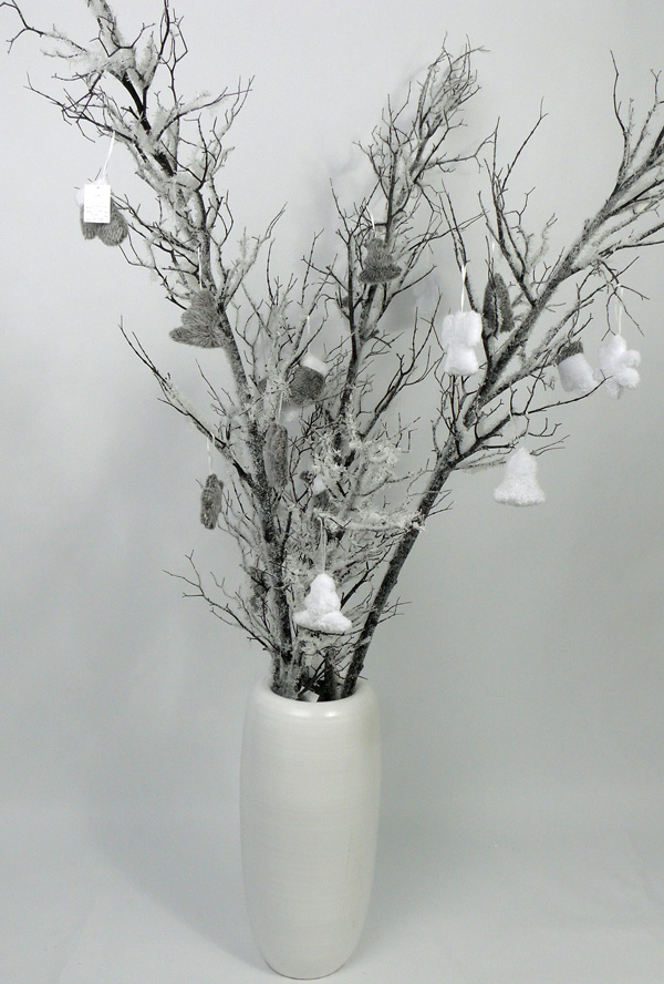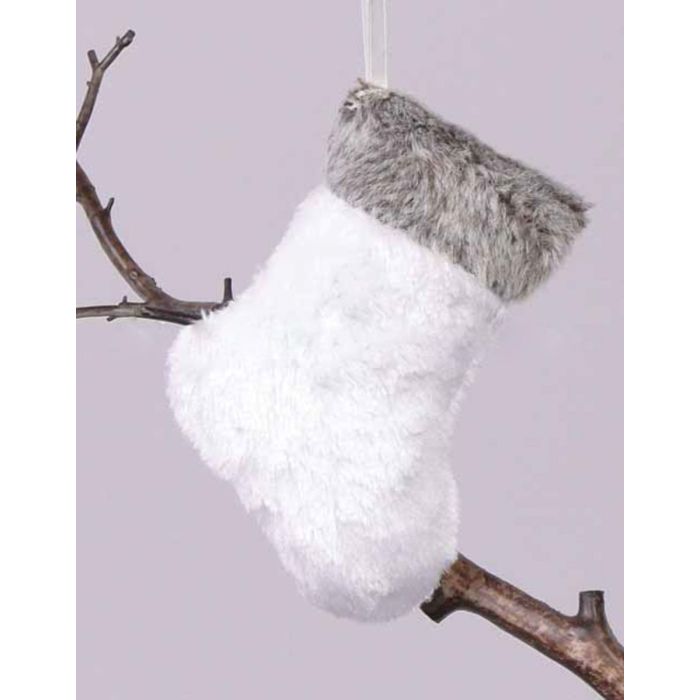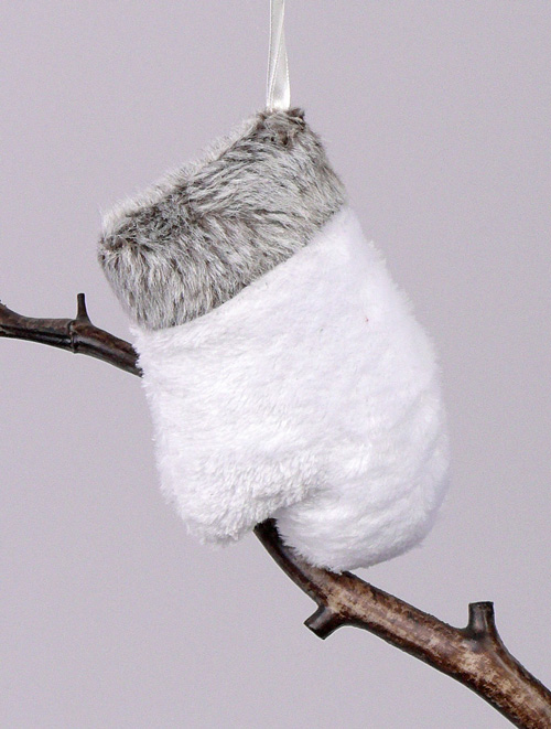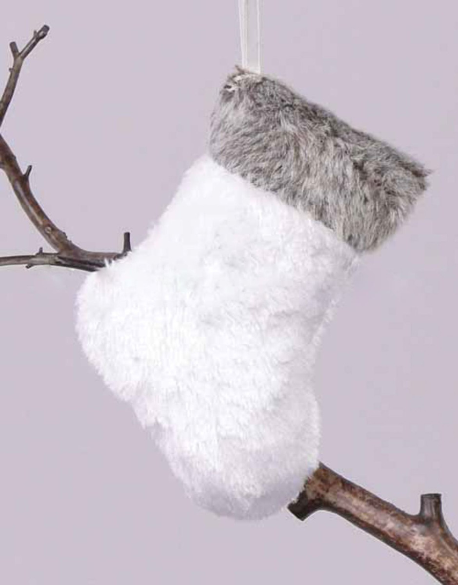 Plush ornament for christmas tree PAFFI, boots, 6 pcs, white-grey, 4"/10cm