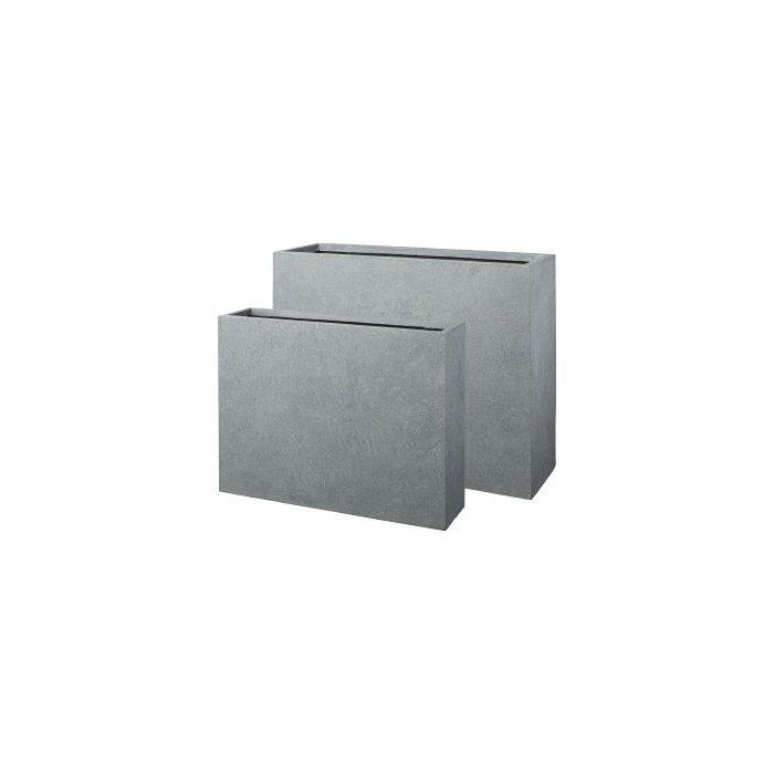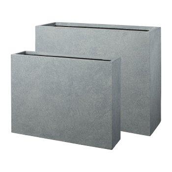 Rectangular window box KIRIMA, 2 pieces, fibreglass, grey, 30"x7"x23"/75x19x59cm, 33"x11"x28"/85x27x70cm