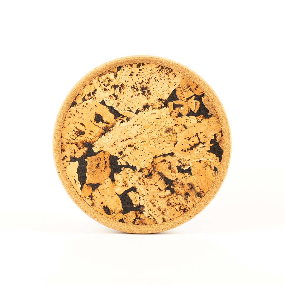 - In natural-black colour made of agglomerated cork, serving surface manufactured from large decorative cork pieces, a binder is added to the sorted cork granulate to form the agglomerated cork, the binder - a food-grade adhesive - acts as a natural binder and ensures that the cork particles adhere to each other while retaining their unique properties