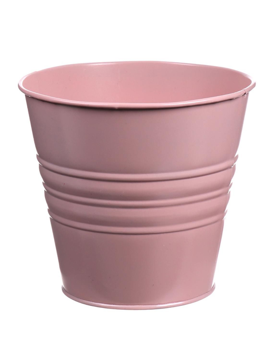 Round plant pot MICOLATO with grooves, zinc, pink, 4.7"/12cm, Ø5.3"/13,5cm