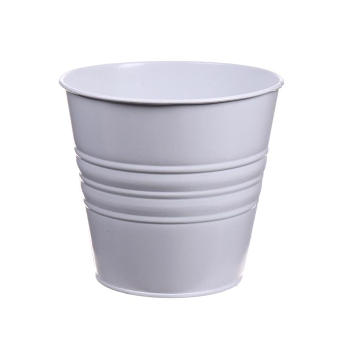 Round plant pot MICOLATO with grooves, zinc, white, 5.1"/13cm, Ø6"/15,5cm