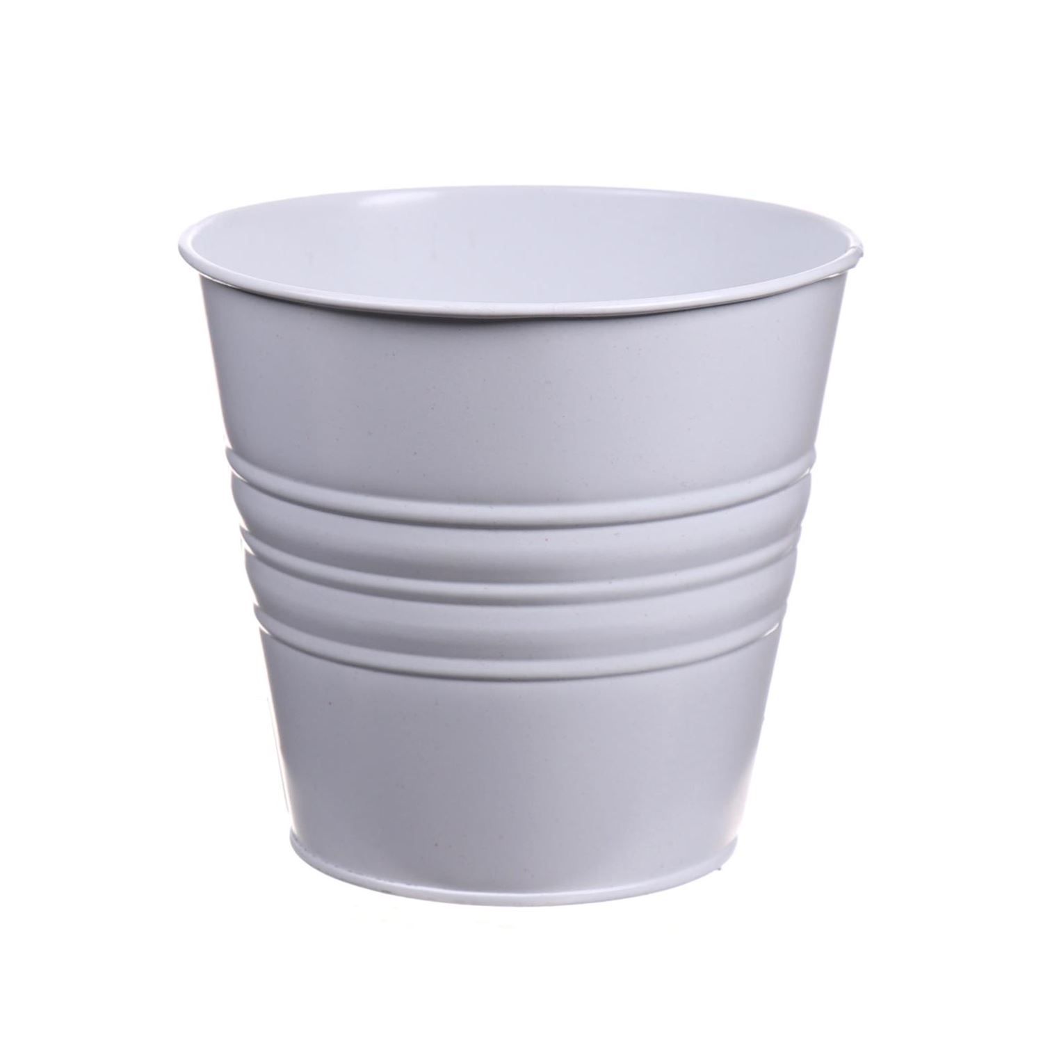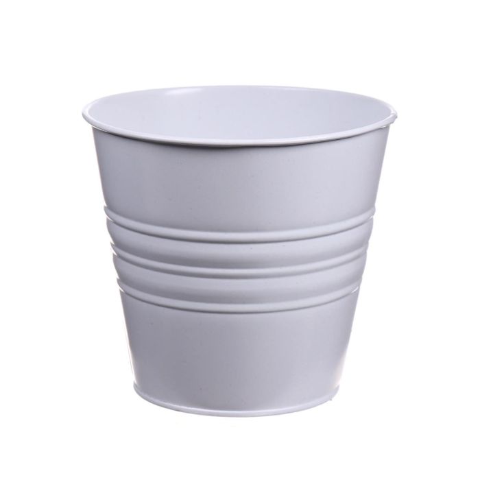 Round plant pot MICOLATO with grooves, zinc, white, 6"/16cm, Ø7"/18,5cm