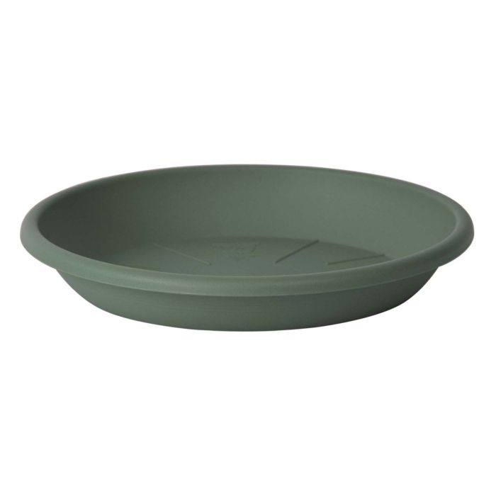 Round planter coaster VENERA made of recycled plastic, with holes, sage green, 2"/5cm, Ø13"/32cm