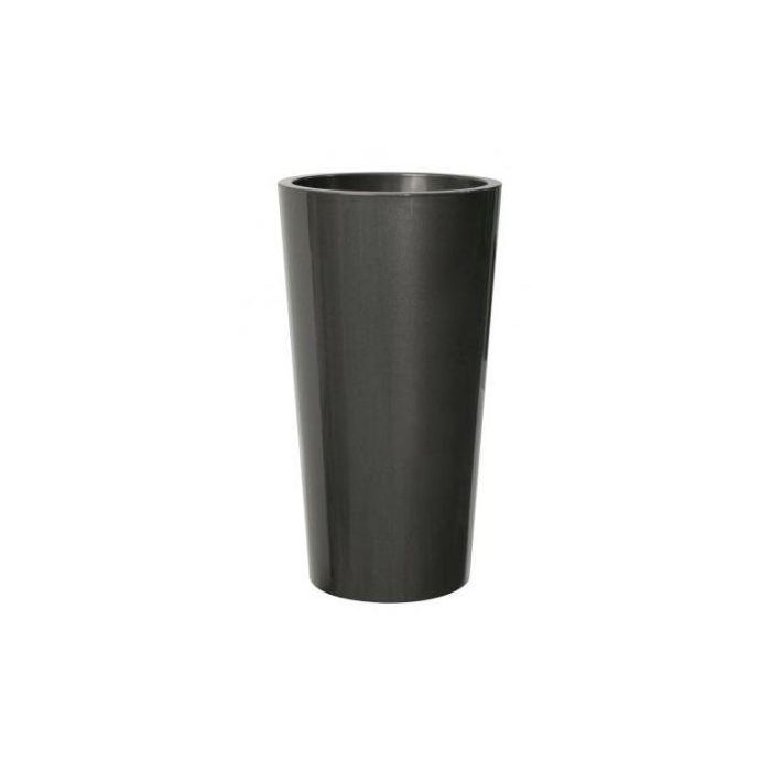 Round tall plant vase THERESITA made of plastic, with insert, watering set, anthracite, 24"/61,5cm, Ø13"/33cm