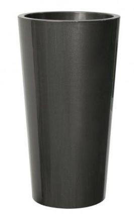 Round tall plant vase THERESITA made of plastic, with insert, watering set, anthracite, 30"/75cm, Ø16"/40cm