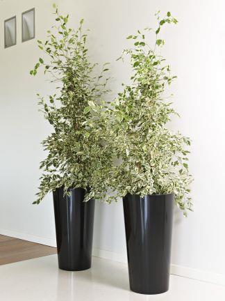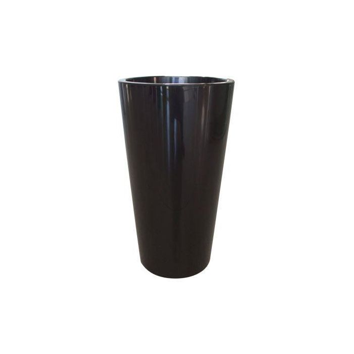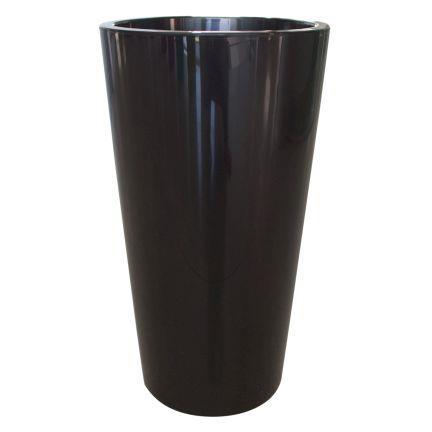 Round tall plant vase THERESITA made of plastic, with insert, watering set, black, 30"/75cm, Ø16"/40cm