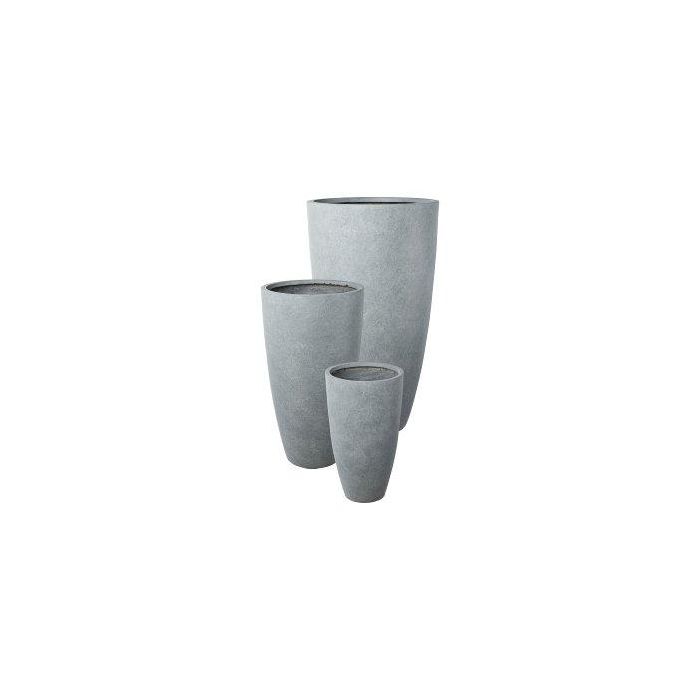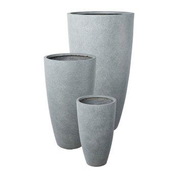 Round tall planter KIRIMA, 3 pieces, fibreglass, grey, 13"x24"/34x60cm, 17"x31"/44x80cm, 21"x3ft/54x100cm
