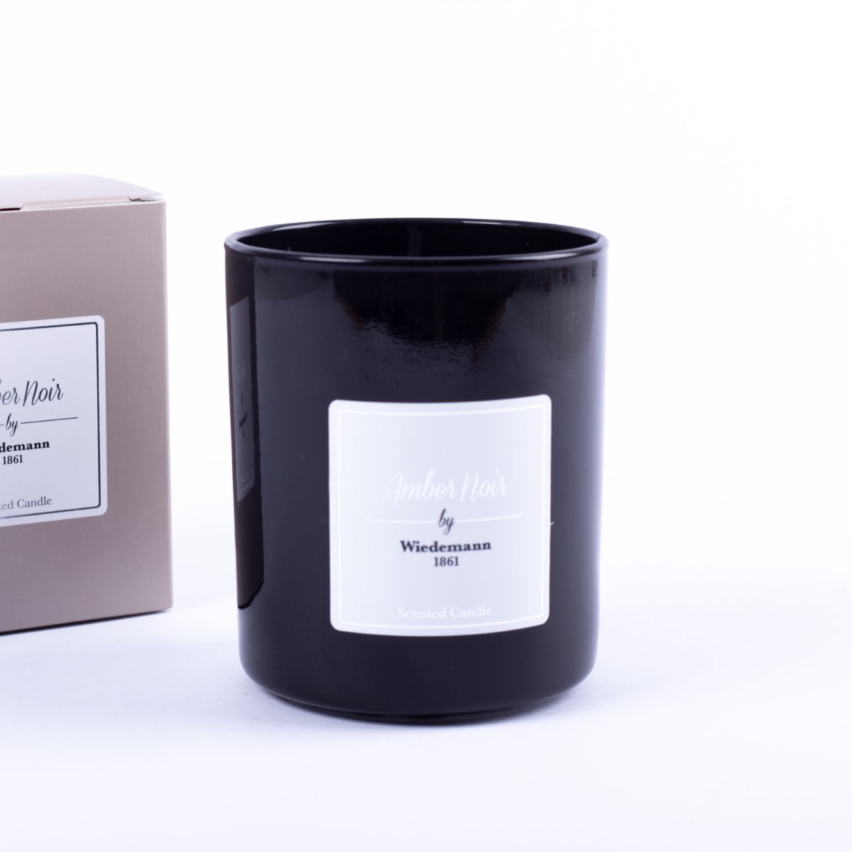Scented wax candle MIREYA in a glass, Amber Noir, black, 3.7"/9,3cm, Ø3.1"/7,9cm, 35h