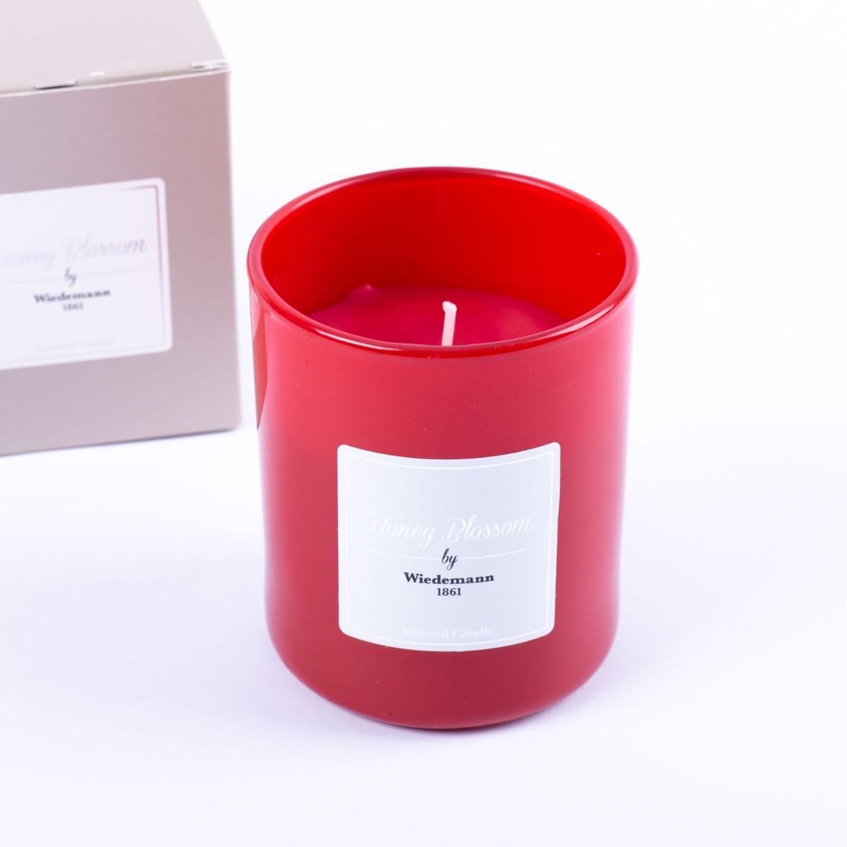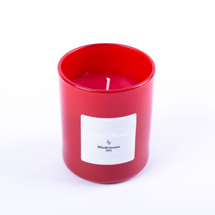 Scented wax candle MIREYA in a glass, Honey Blossom, red, 3.7"/9,3cm, Ø3.1"/7,9cm, 35h