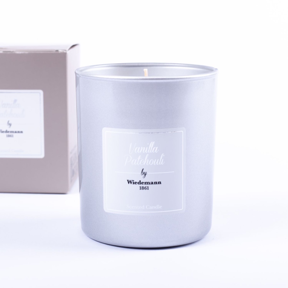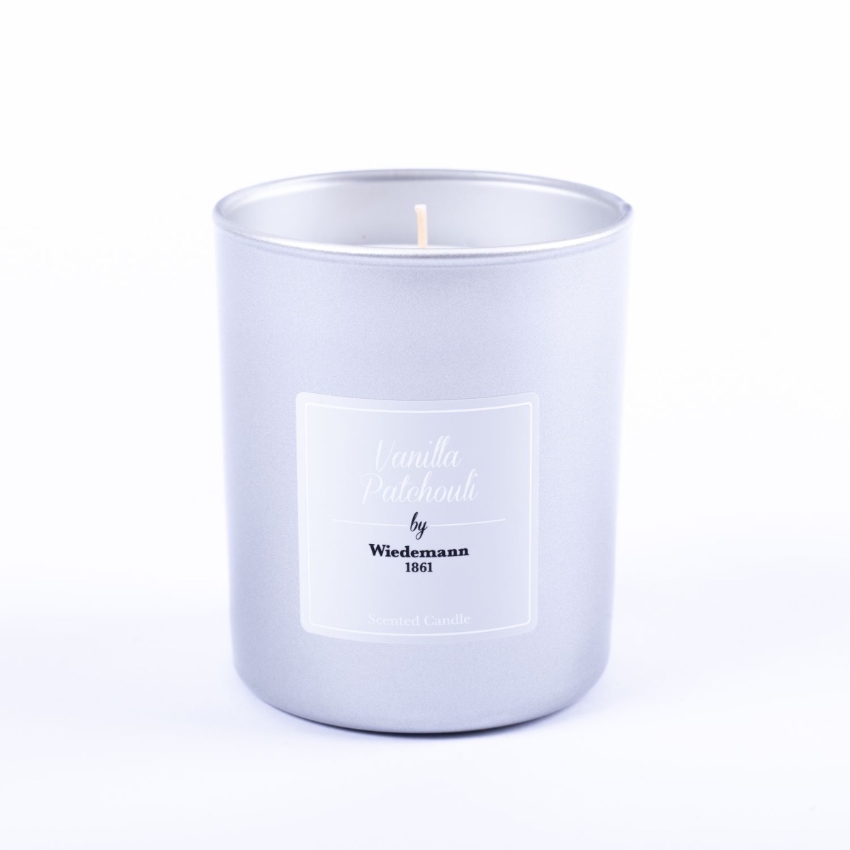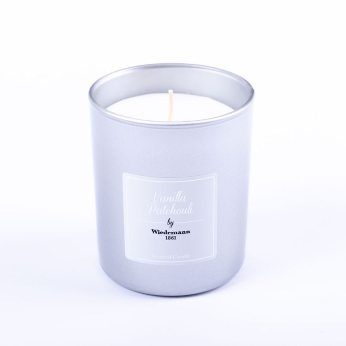 Scented wax candle MIREYA in a glass, Vanilla Patchouli, silver, 3.7"/9,3cm, Ø3.1"/7,9cm, 35h