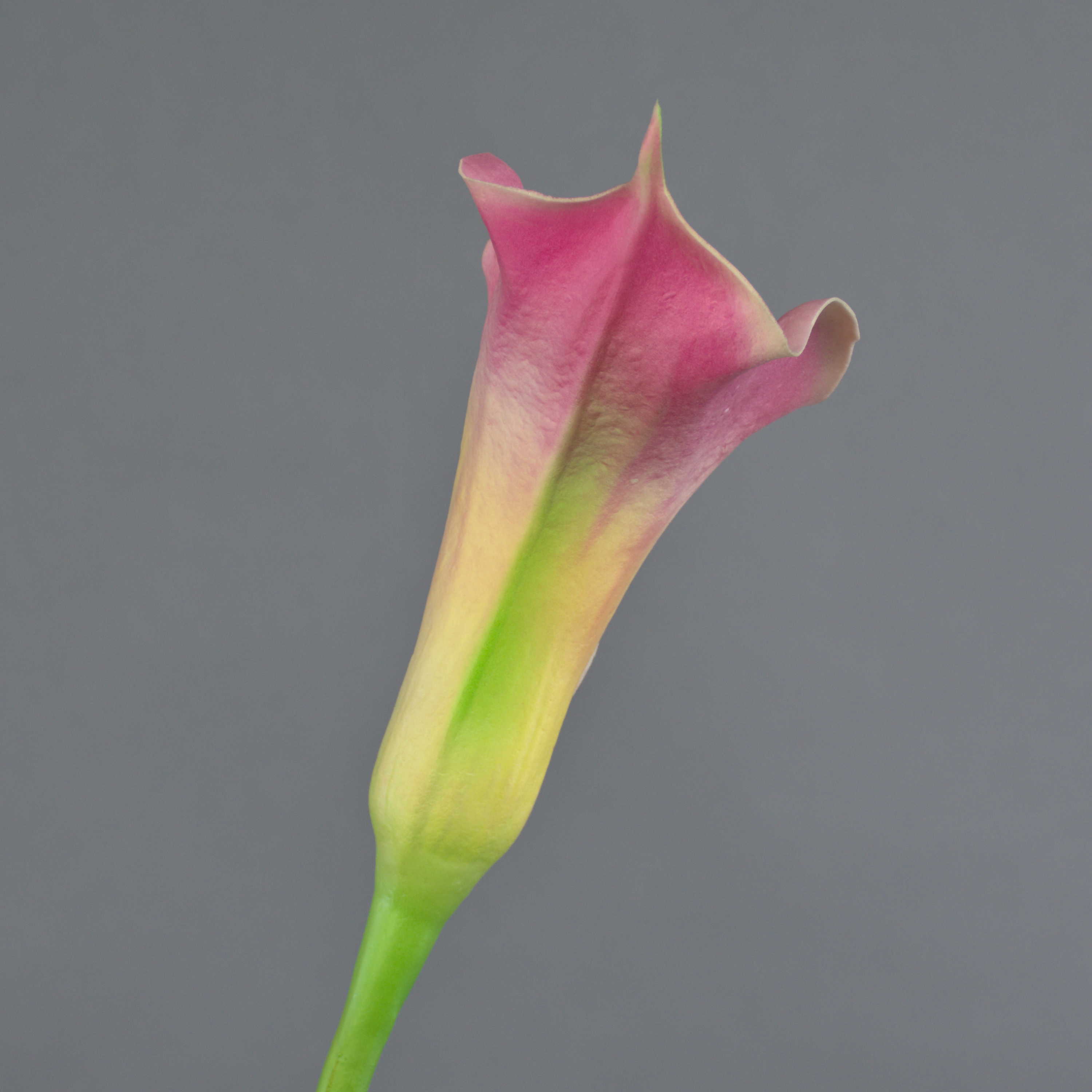 The large decorative Calla with its pink bloom is a very impressive flower. The beauty measures approx. 28"/70 cm in length with a large flower-shaped upper petal.
