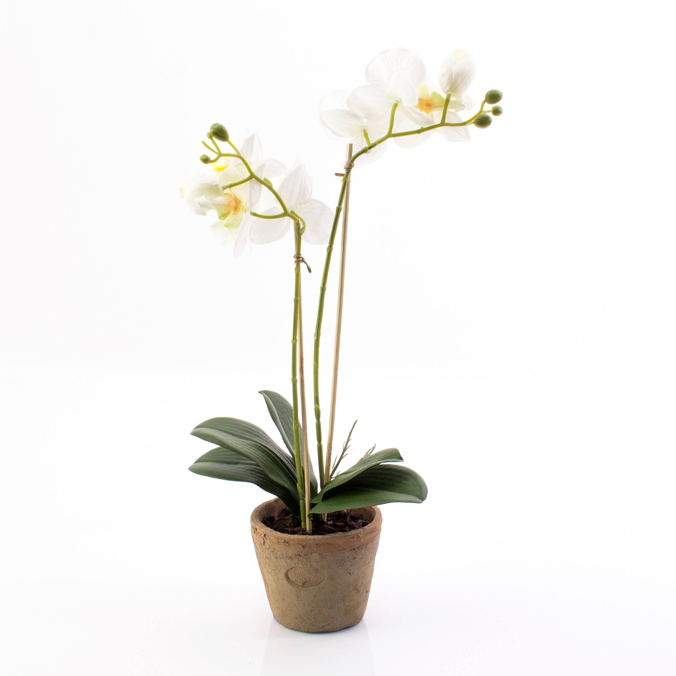 Silk orchid MINA in a terracotta pot, white, 18"/45cm, Ø2.4"-3.1"/6-8cm