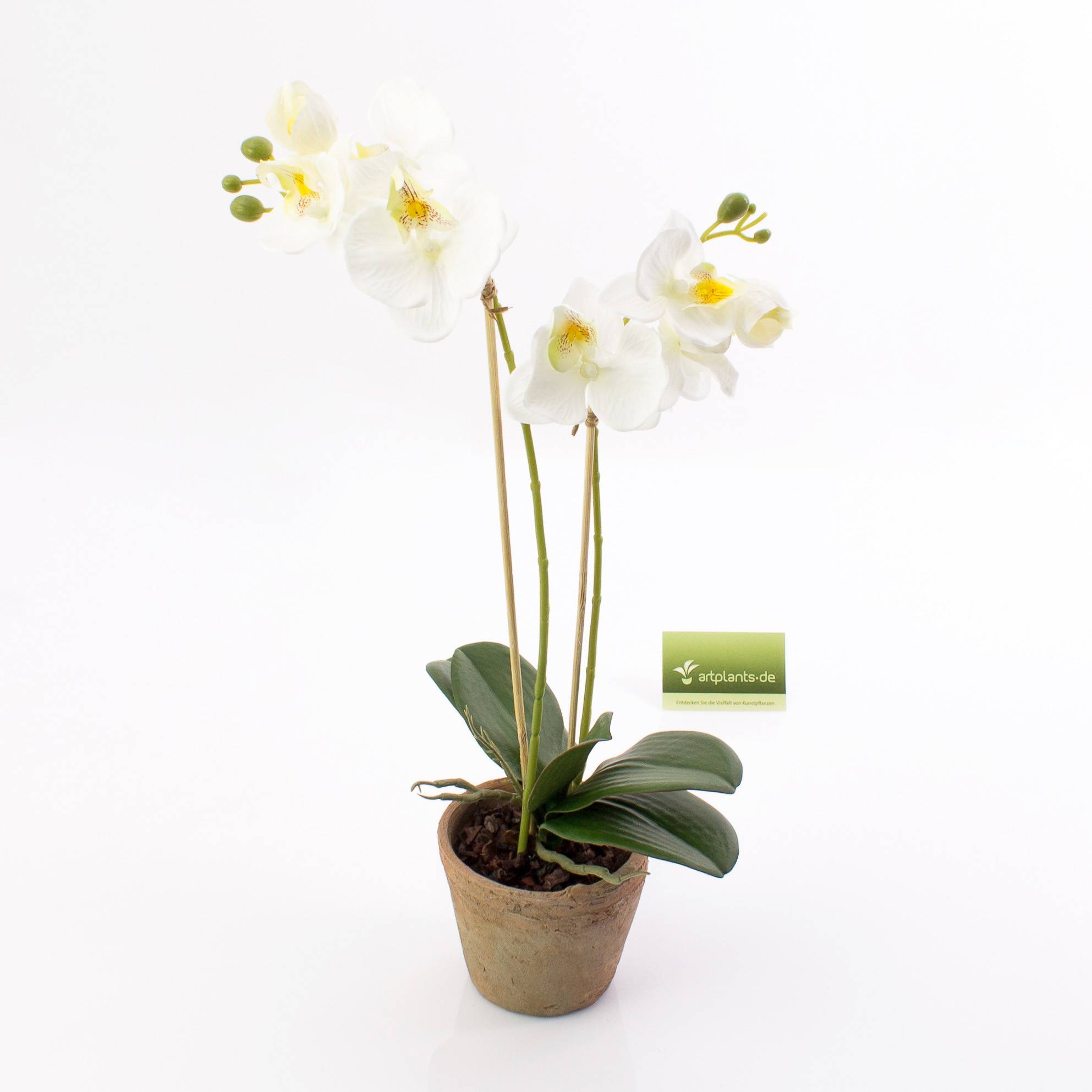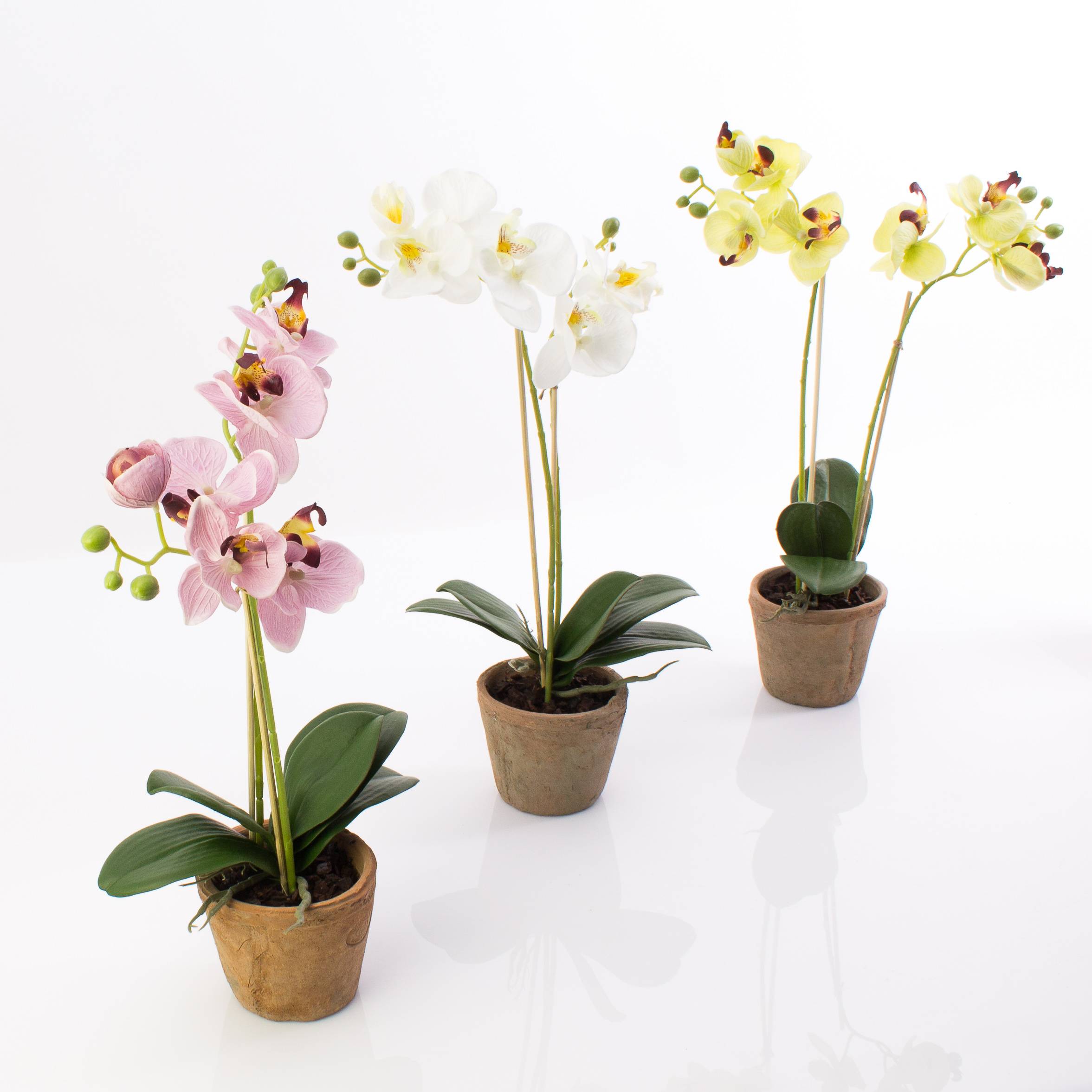 Fake Phalaenopsis orchid MINA in decorative terracotta pot