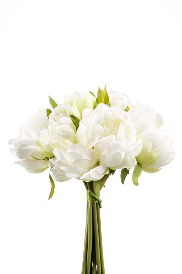 Silk peony bouquet WILO, white-green, 10"/25cm