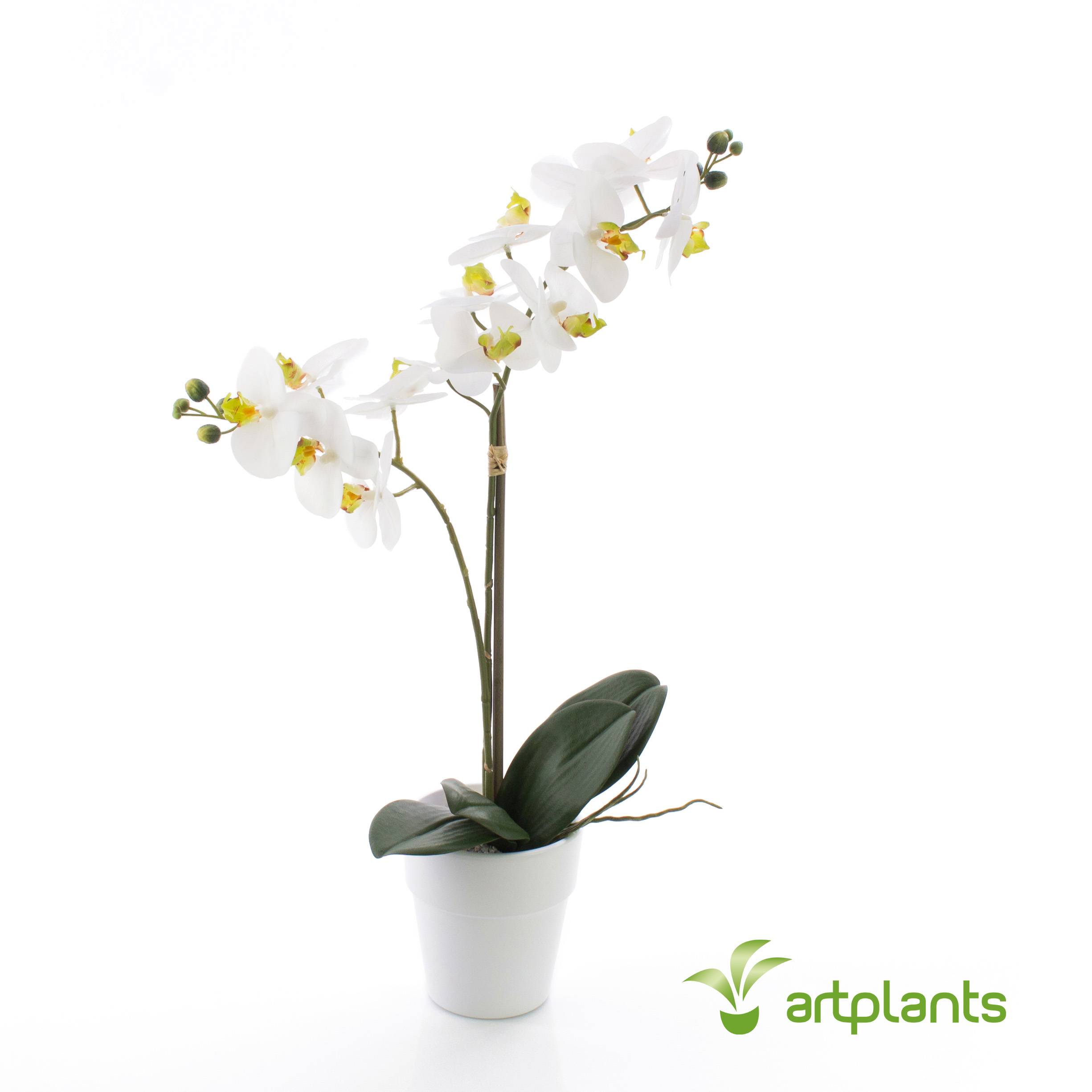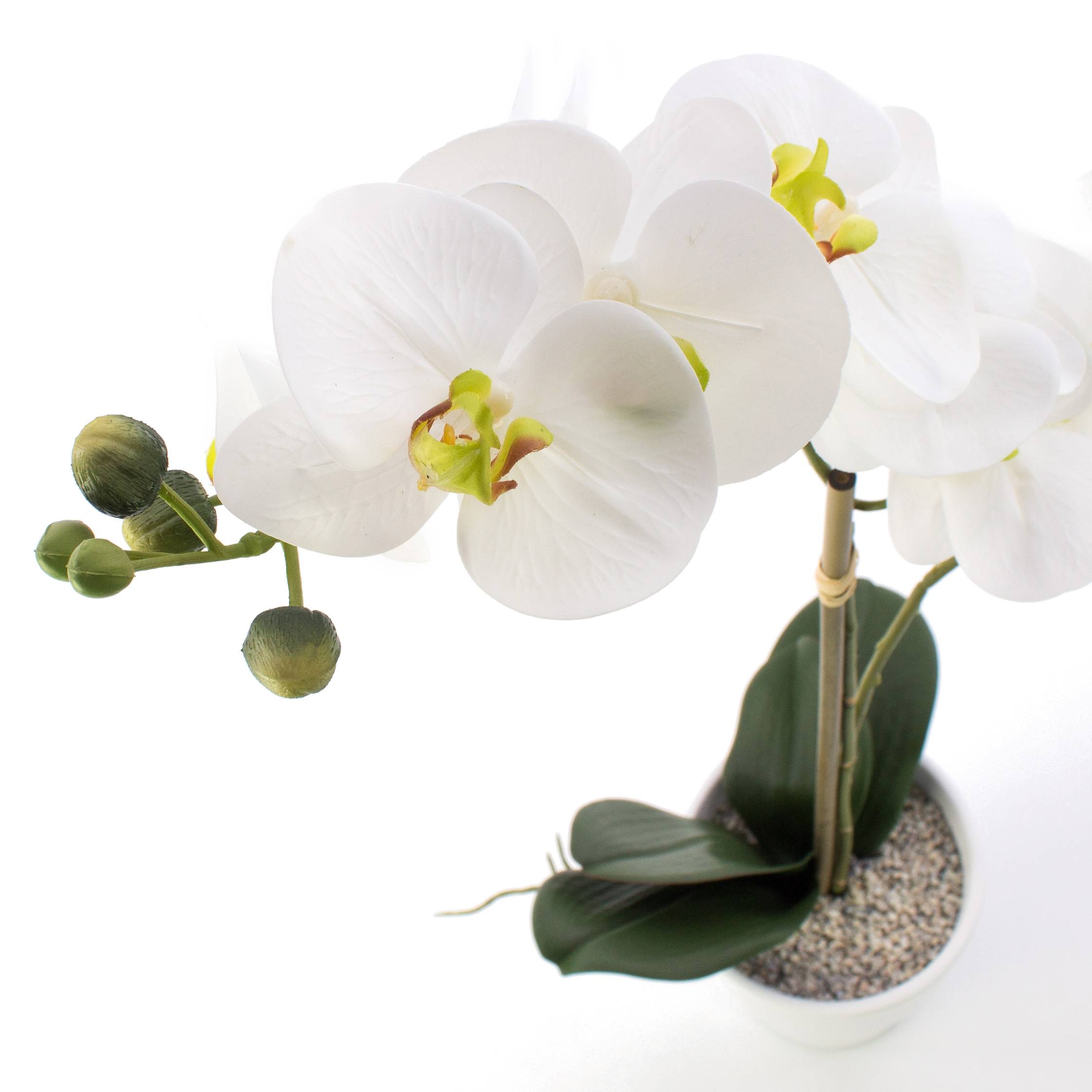 Artificial Phaleanopsis orchid CANDIDA in a white pot