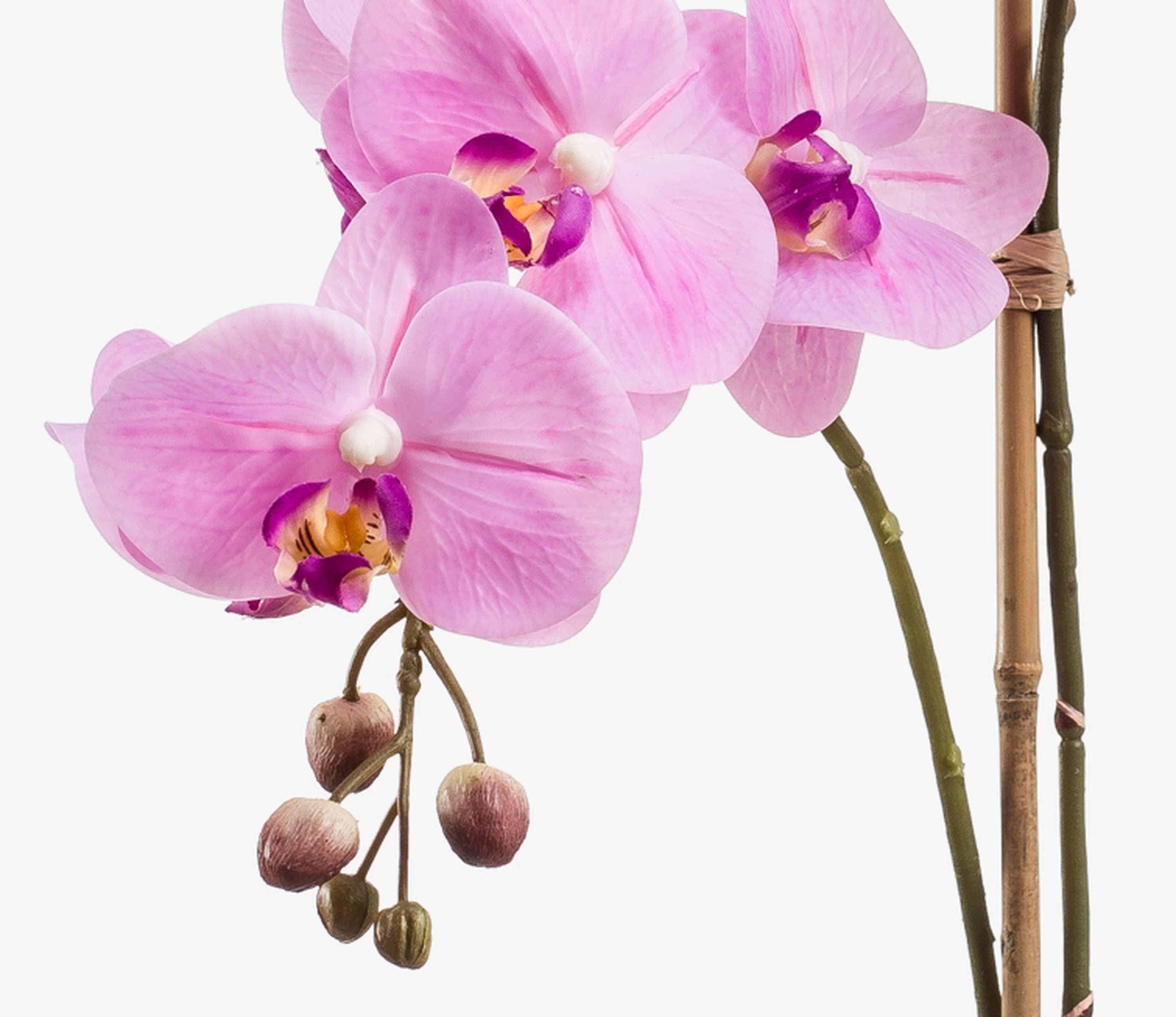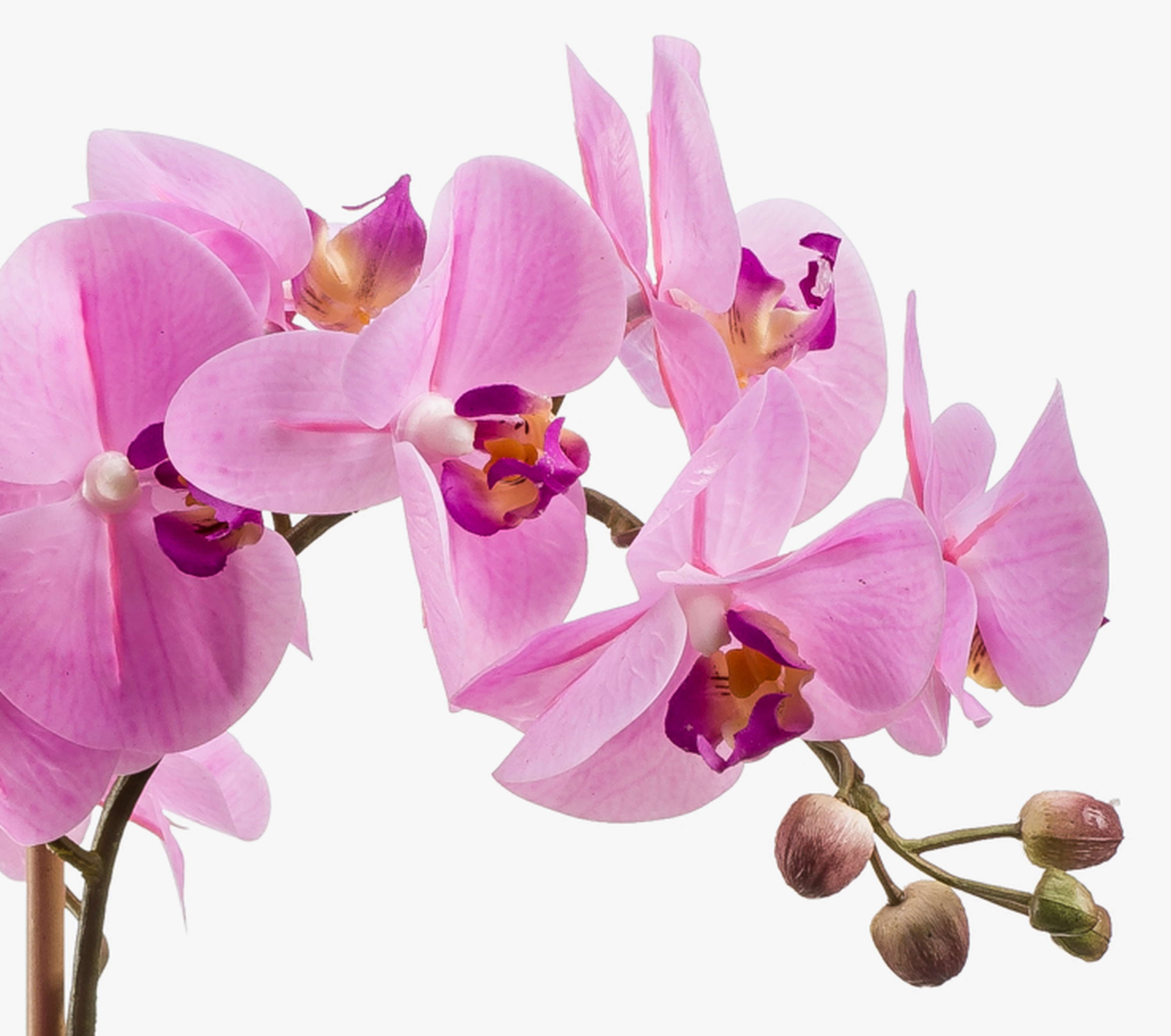 This artificial orchid (Phalaenopsis) CANDIDA adorned with two flower panicules in light pink colour will make a tasteful addition to your furnishing in the living room, bedroom or dining room.