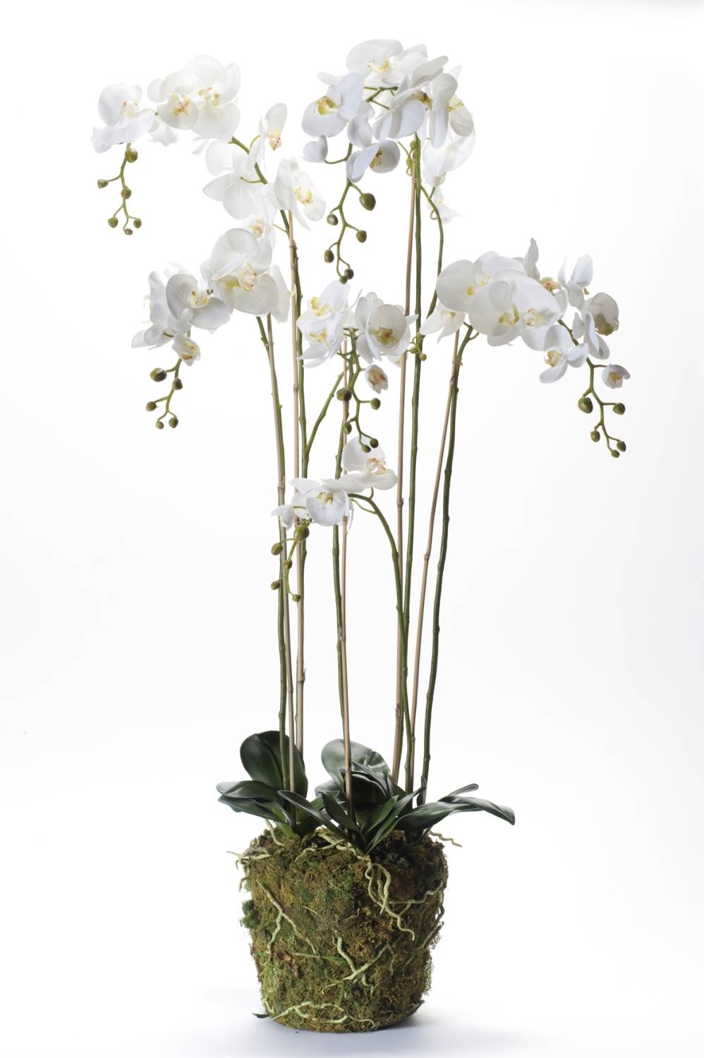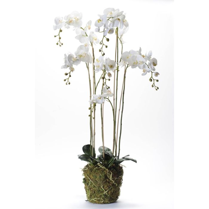 Silk phalaenopsis PABLA moss ball, white, 5ft/145cm, Ø4"-6"/10-15cm