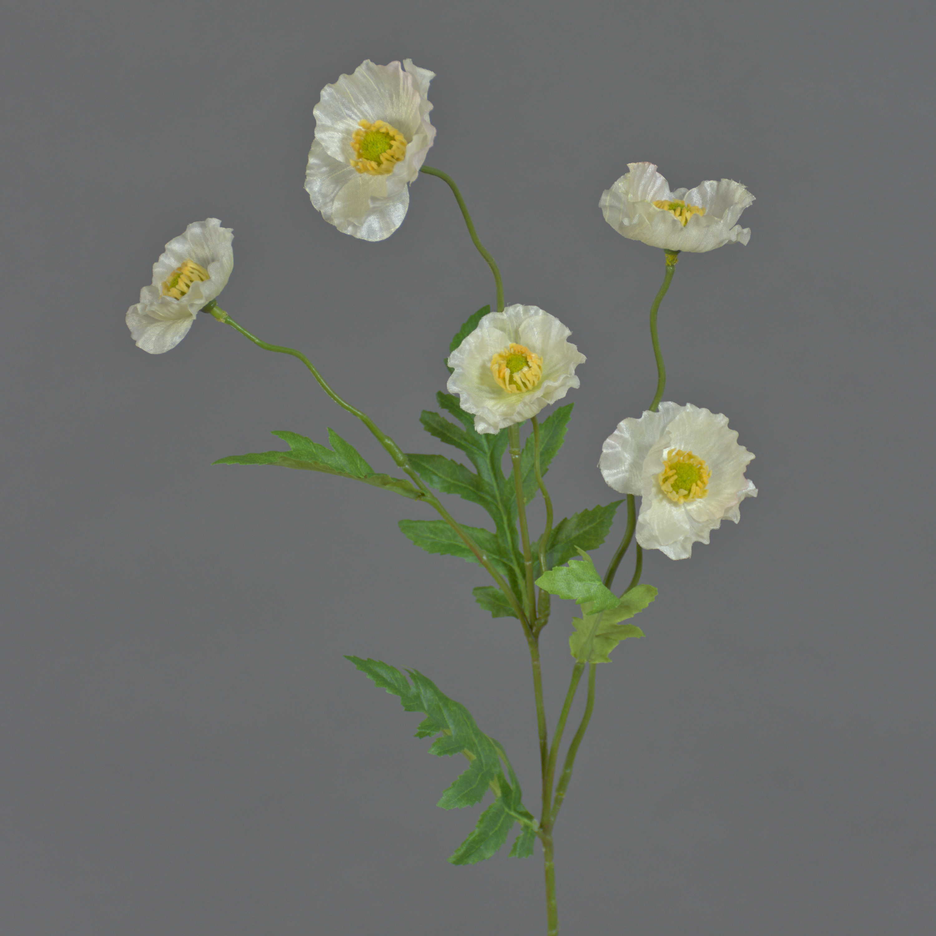 Silk poppy flower KEIRA, white, 26"/65cm, Ø2"/5cm