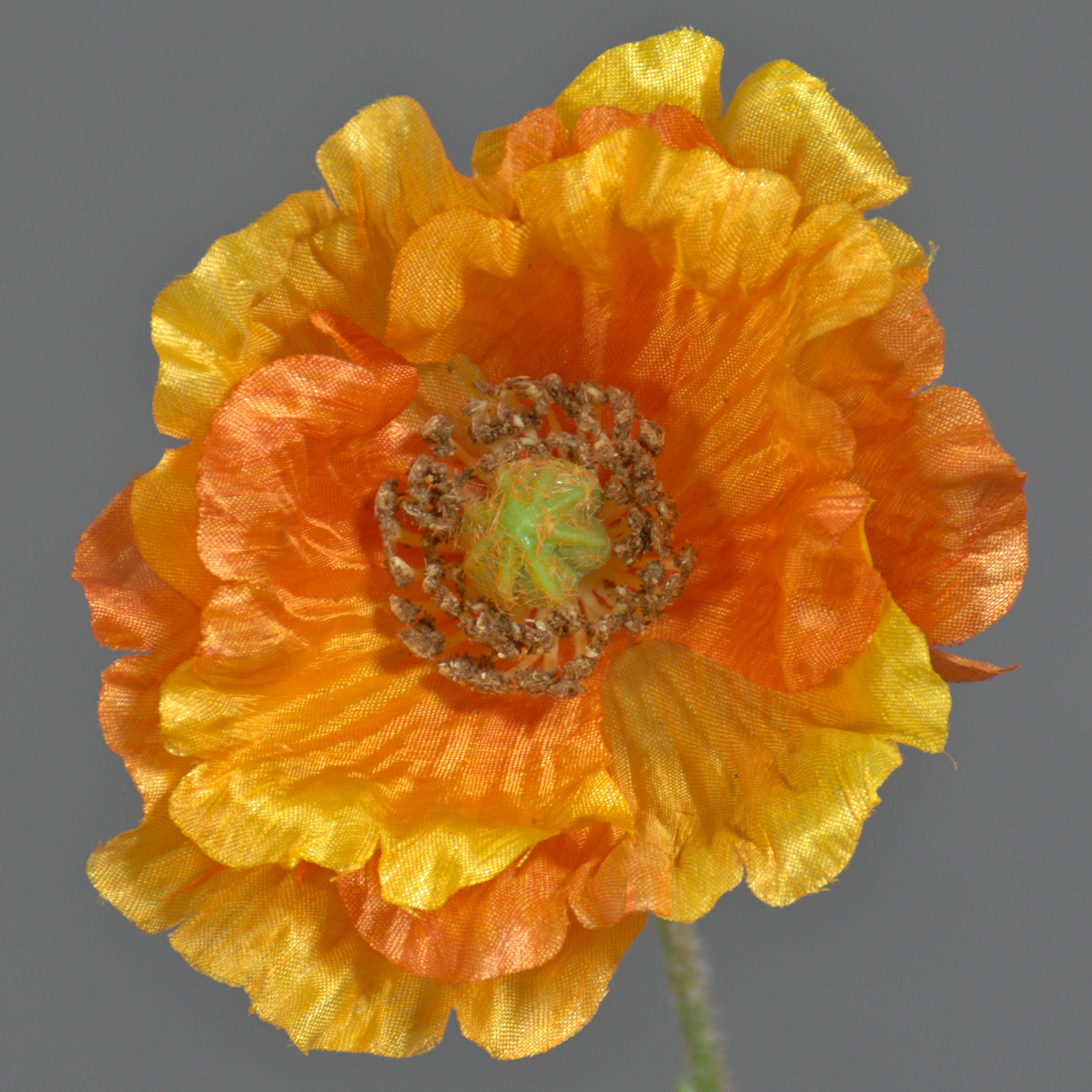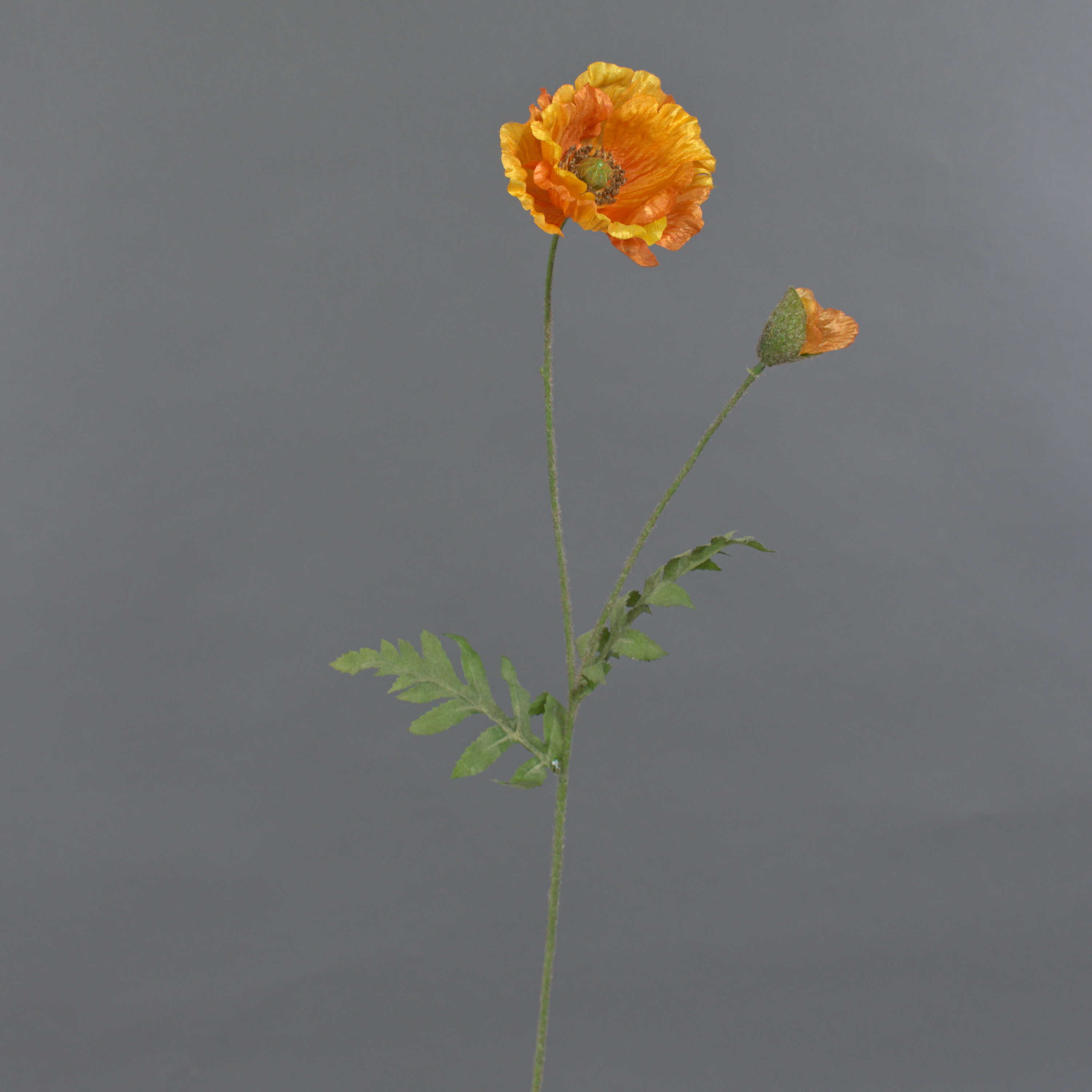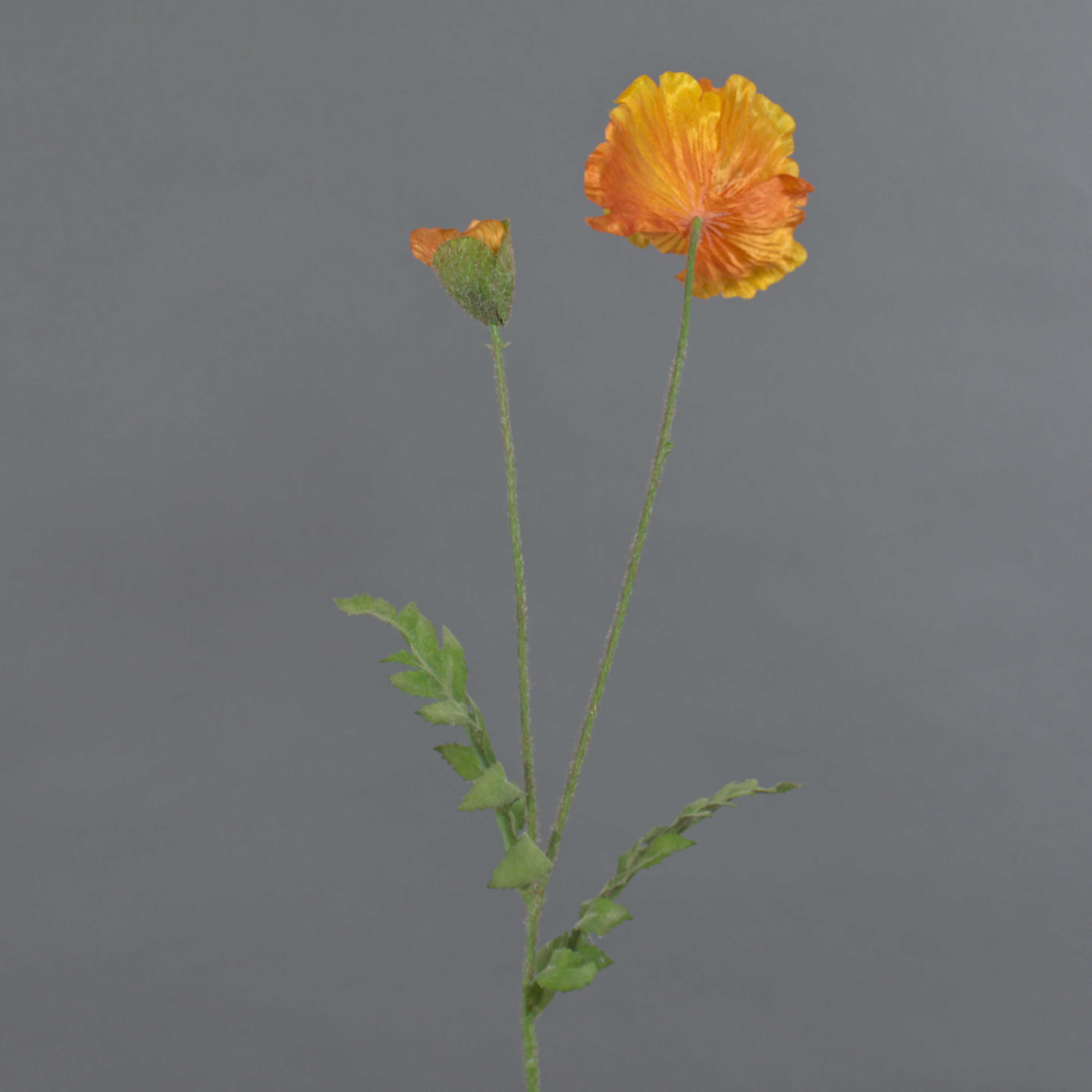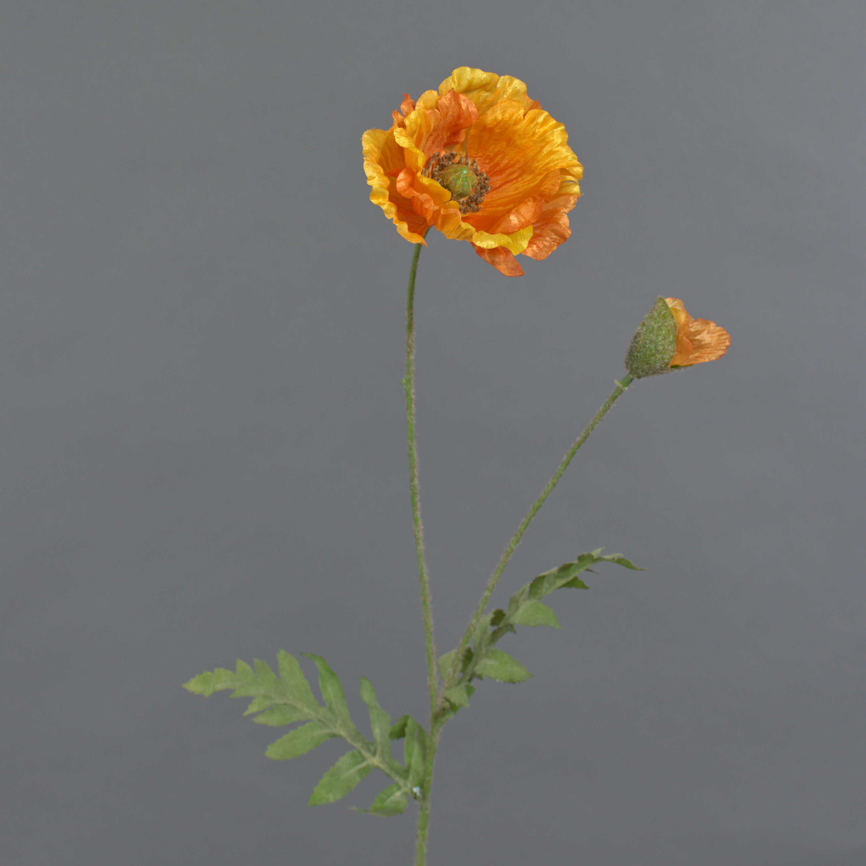 Silk poppy flower LIENTJE, orange, 26"/65cm, Ø4.7"/12cm