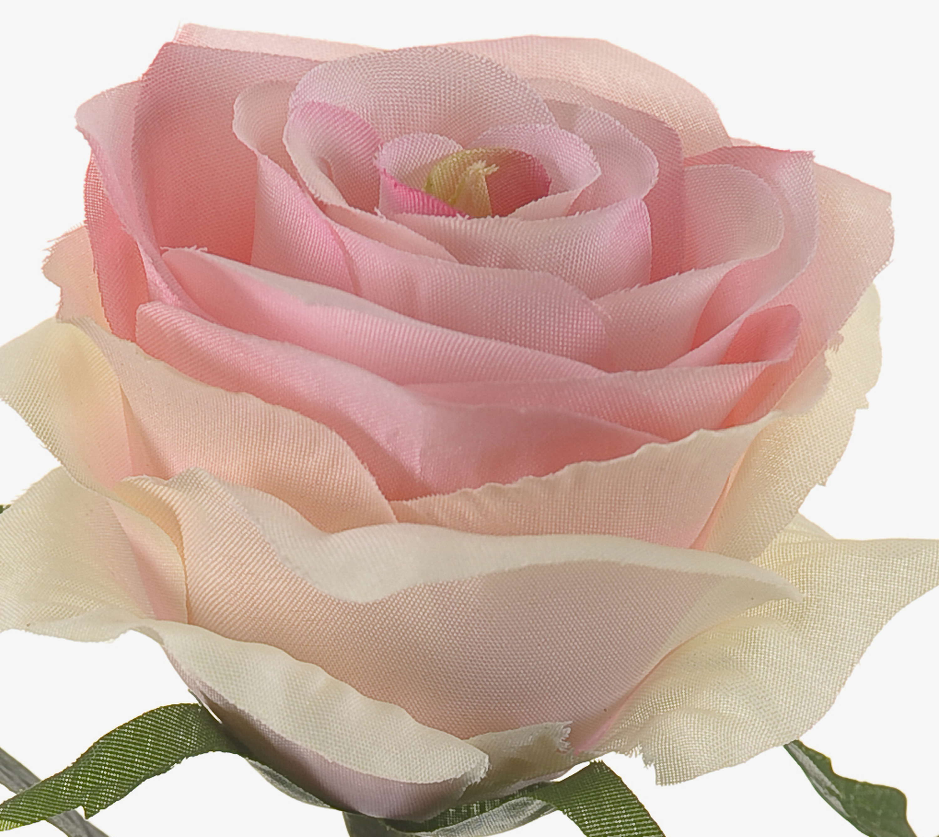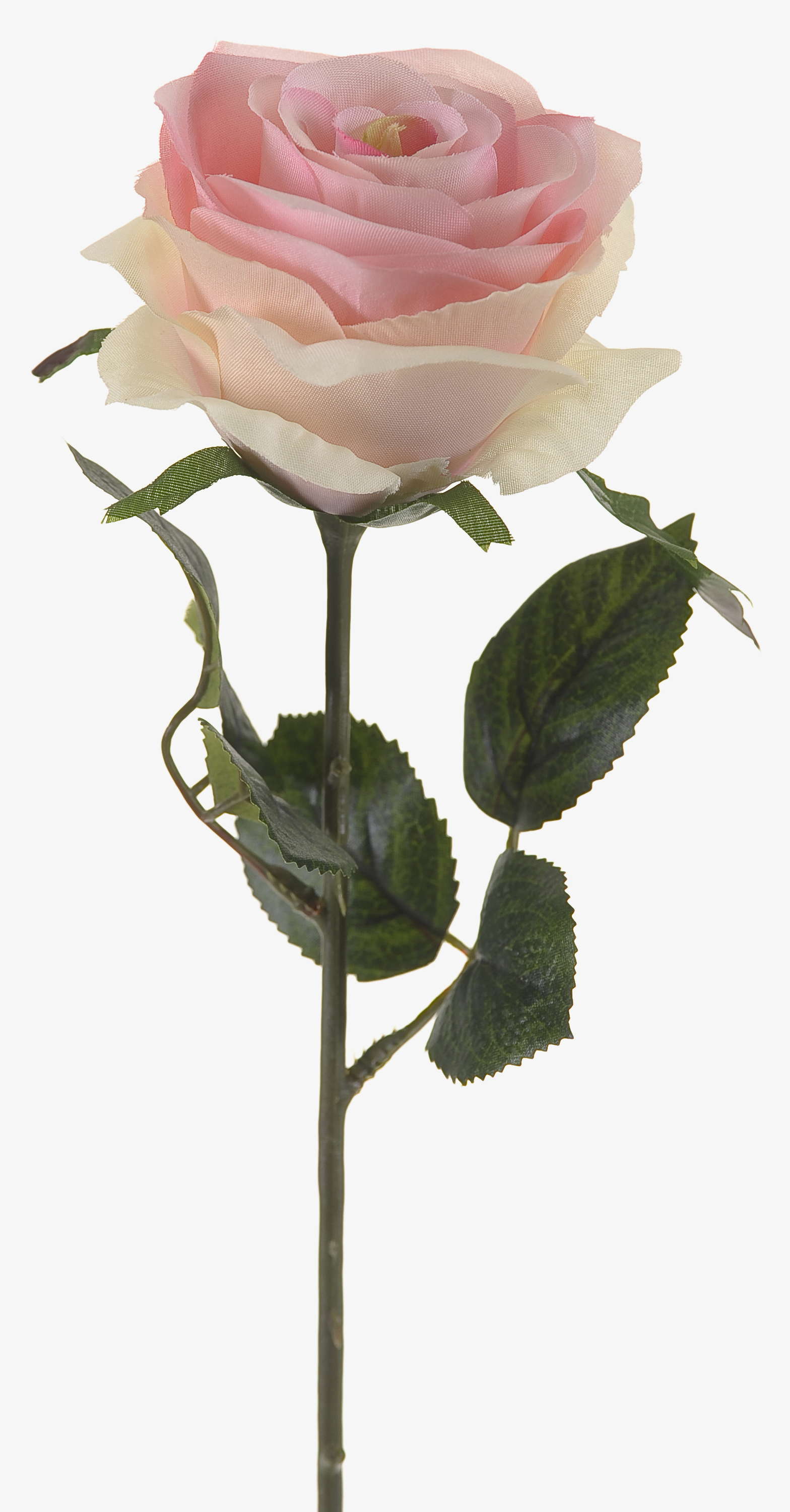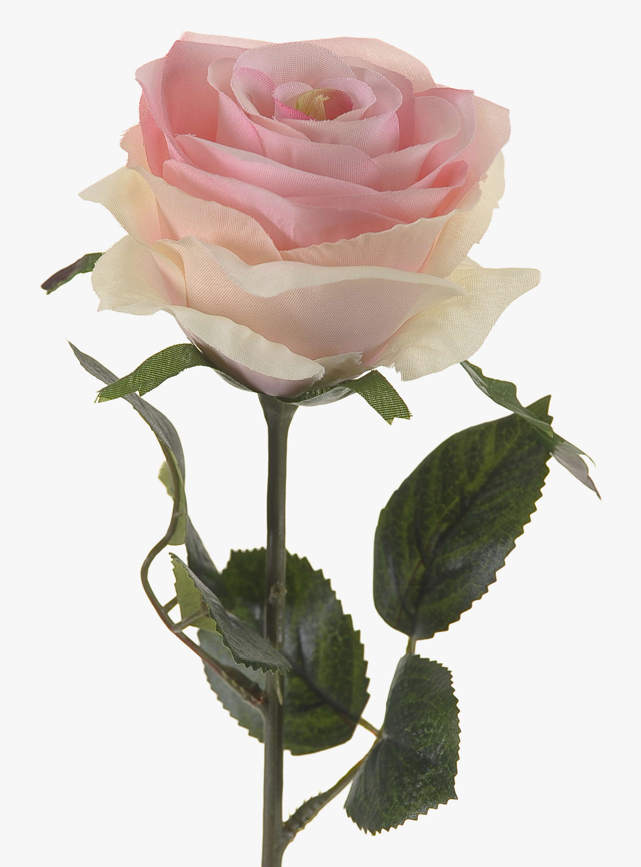 Beautiful artificial rose SIMONY in flower colour light pink with green leaves. This artificial rose measures approx. 18"/45 cm in length and has a flower diameter of approx. 3.1"/8 cm.