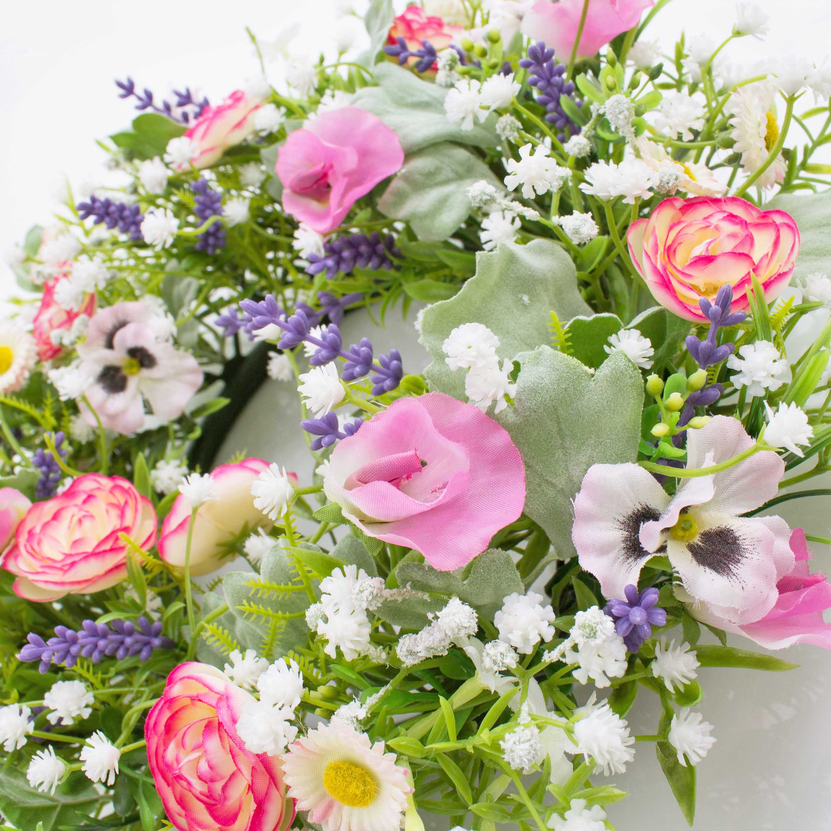 Spring wreath FELICIA with pansies, ranunculus, light pink-white, Ø12"/30cm