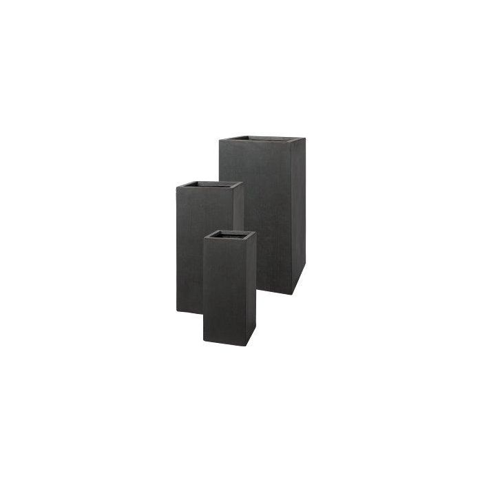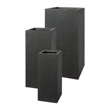 Square column planter KIRIMA, 3 pieces, fibreglass, anthracite, 8"x8"x20"/20x20x50cm, 10"x10"x24"/26x26x60cm, 13"x13"x28"/33x33x70cm