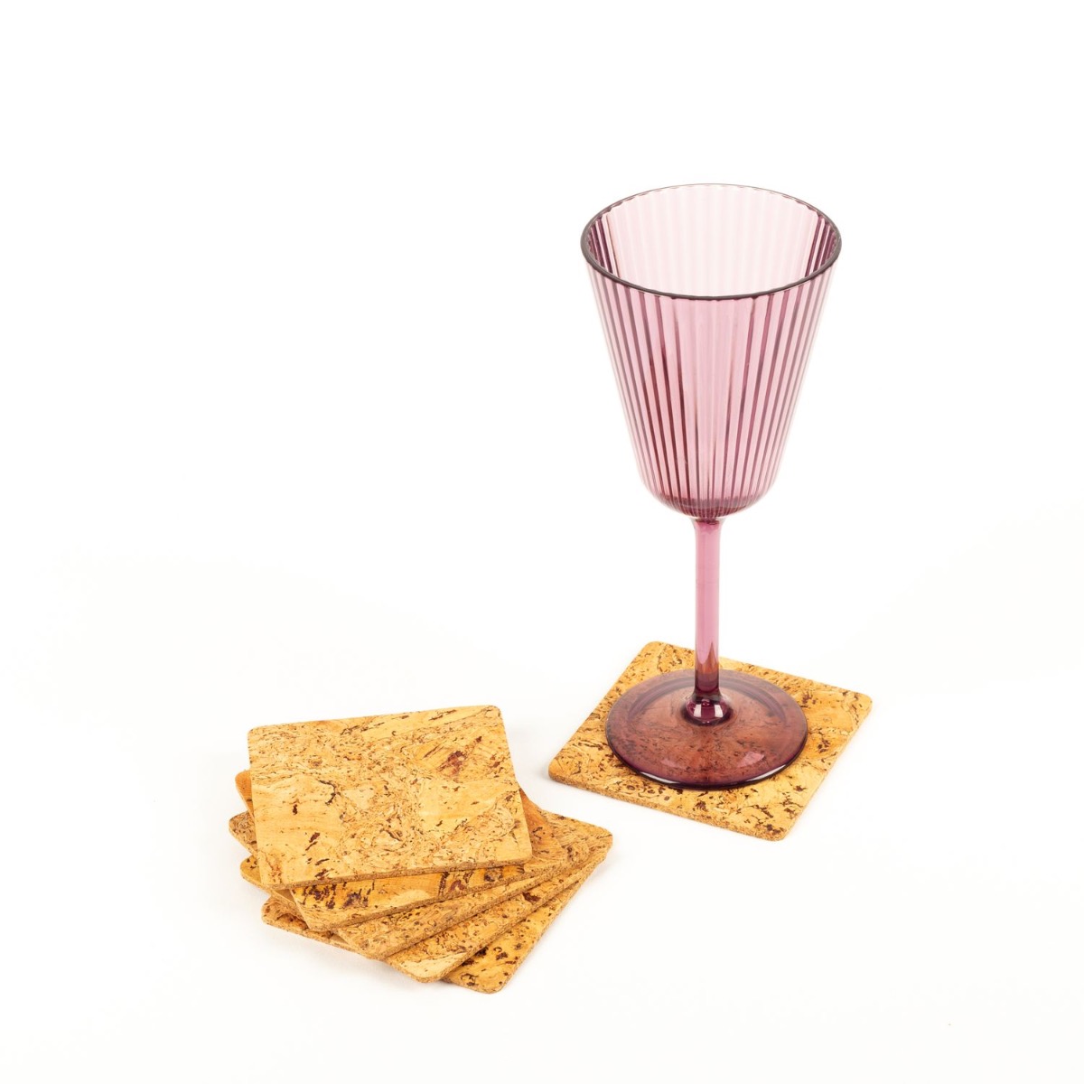 Square glass coaster made of cork BRIANO, 6 pieces, natural, 3.5"x3.5"/9x9cm, thickness 0.1"/0,3cm