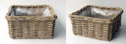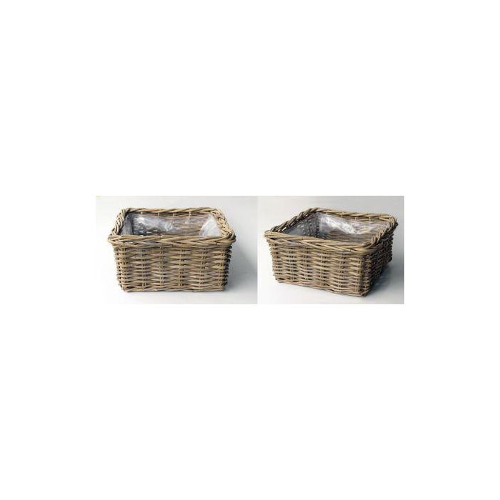 Square plant basket RULANA made of rattan, brown, 12"x12"x6"/30x30x15cm