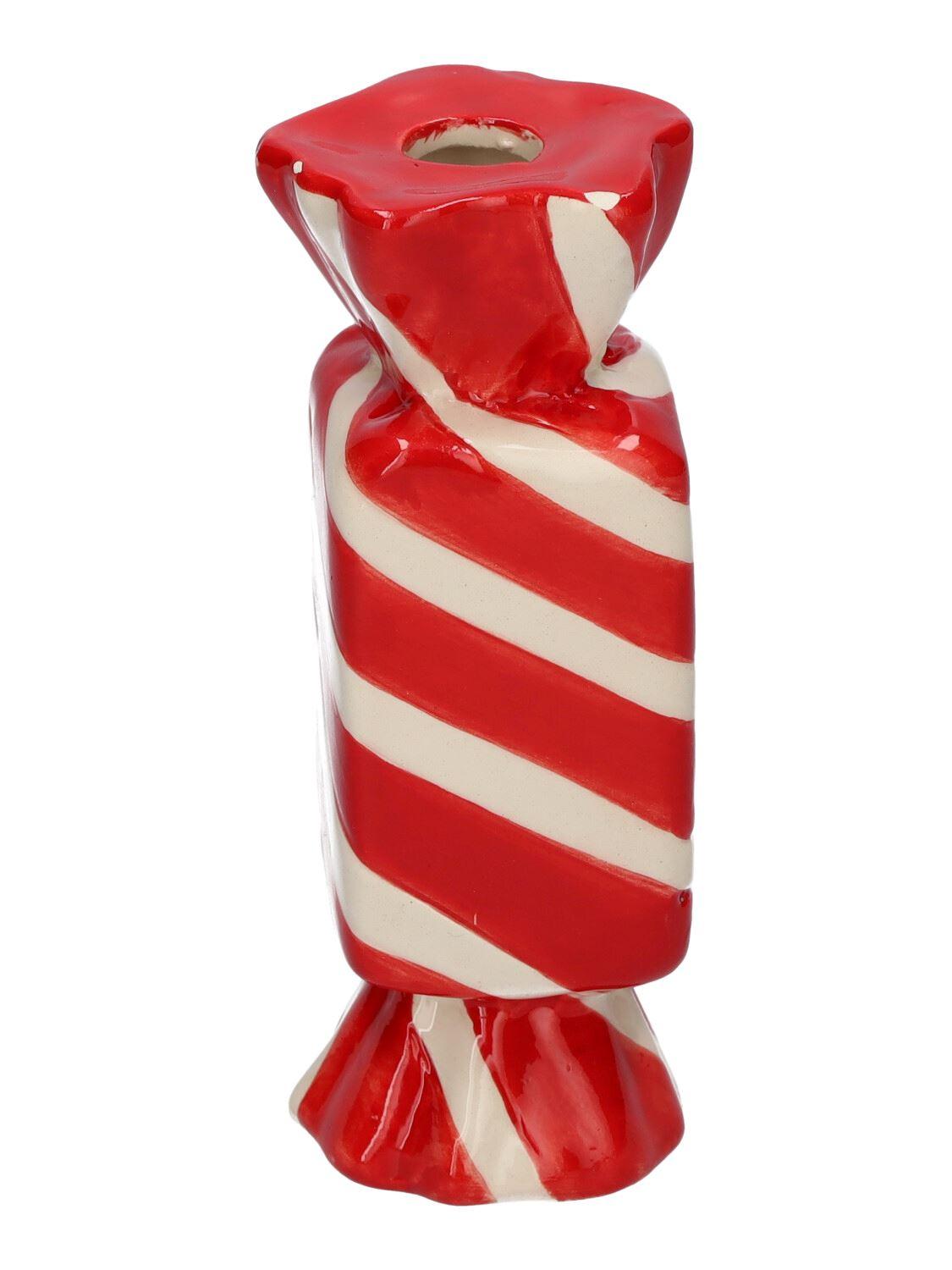 Square single stem vase in the shape of a sweet AMIEL made of ceramic, with diagonal lines, red-white, 1.8"x1.8"x4.5"/4,5x4,5x11,5cm