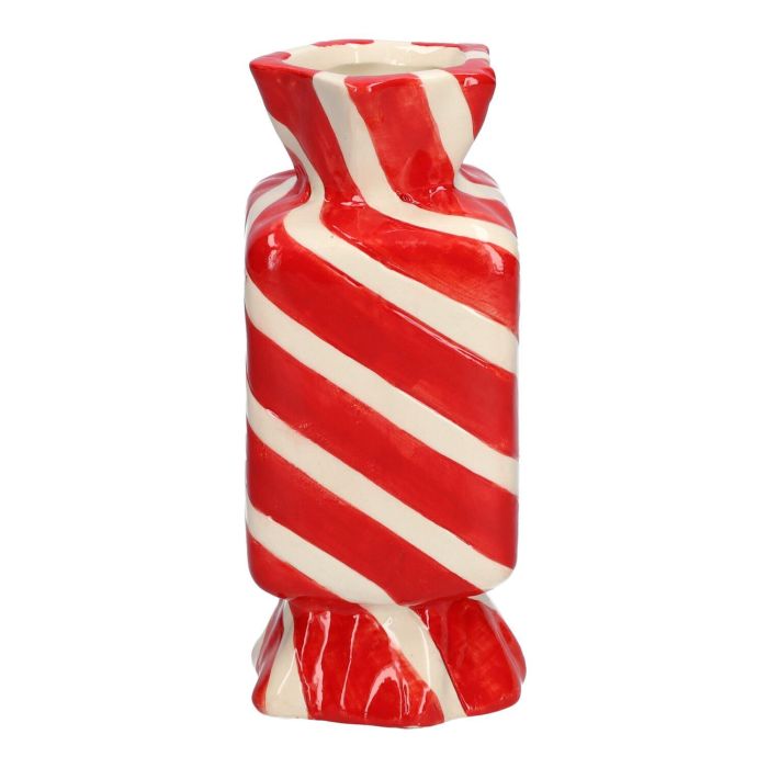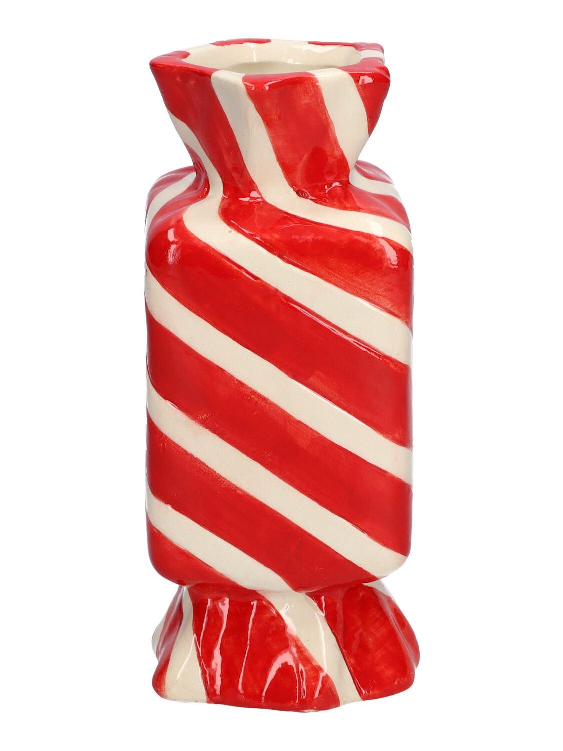 Square single stem vase in the shape of a sweet AMIEL made of ceramic, with diagonal lines, red-white, 2.6"x2.6"x6"/6,5x6,5x15cm