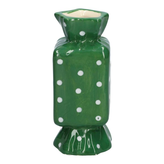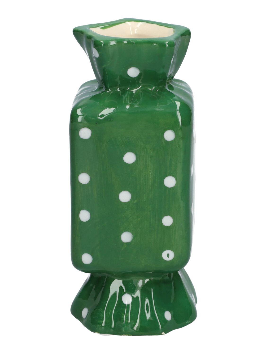 Square single stem vase in the shape of a sweet AMIEL made of ceramic, with polka dots, green-white, 2.6"x2.6"x6"/6,5x6,5x15cm