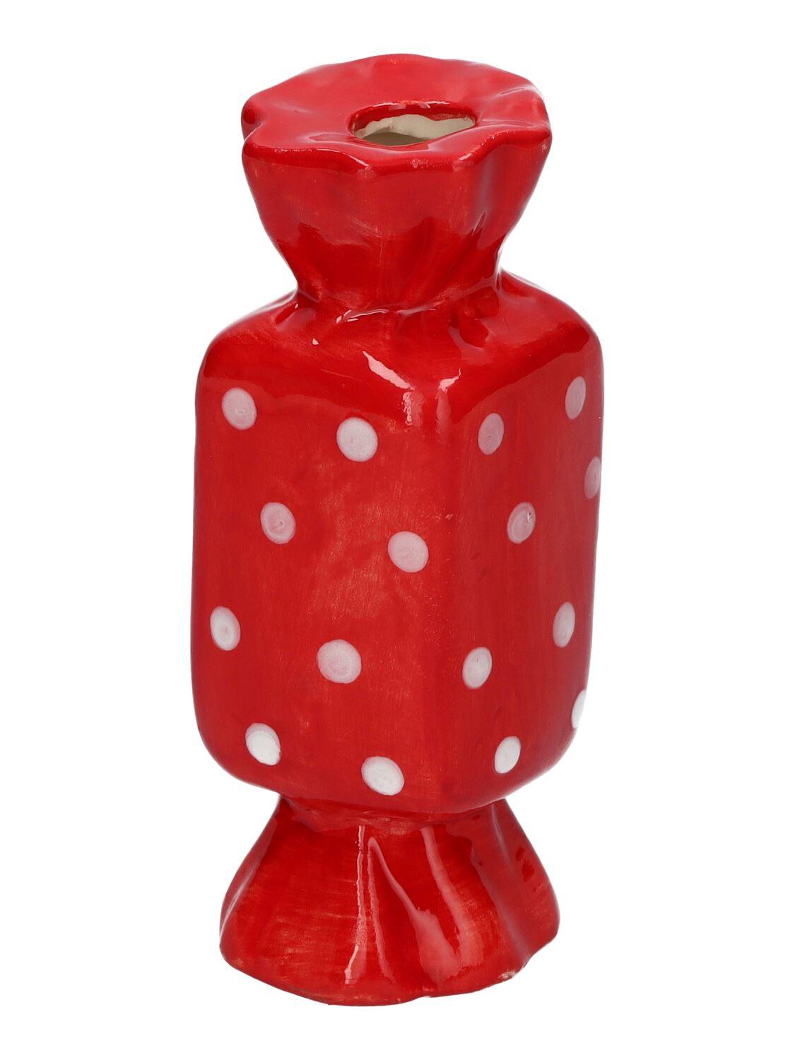 Square single stem vase in the shape of a sweet AMIEL made of ceramic, with polka dots, red-white, 2.6"x2.6"x6"/6,5x6,5x15cm