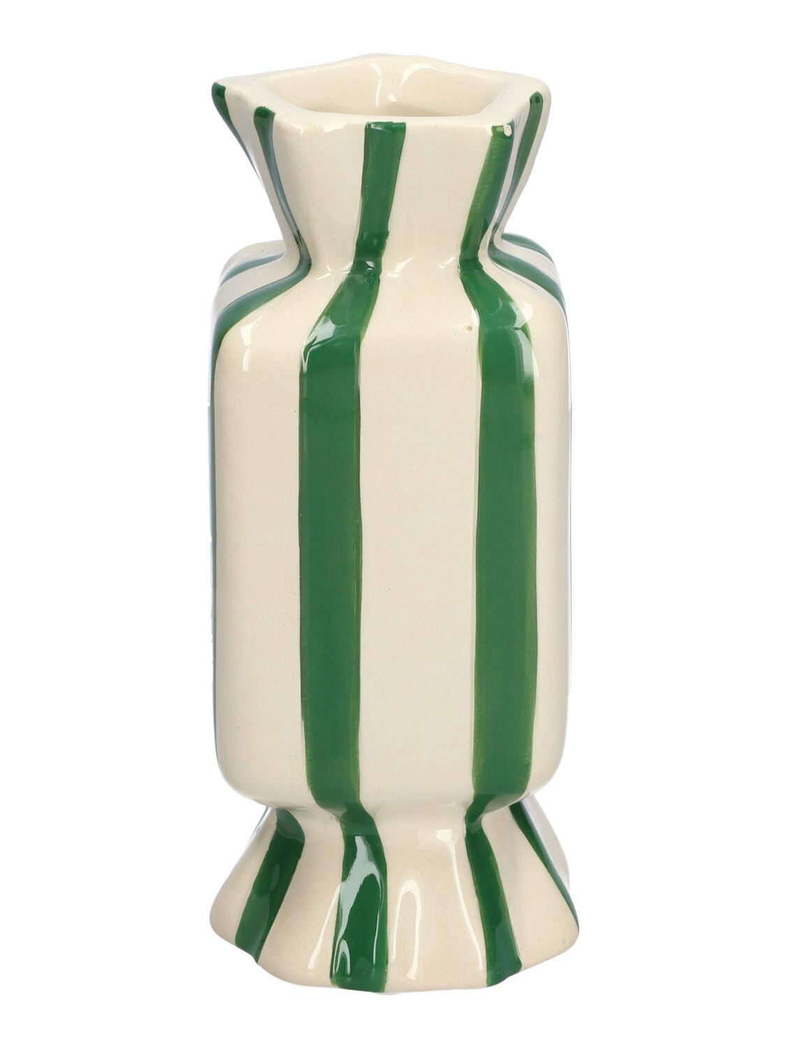 Square single stem vase in the shape of a sweet AMIEL made of ceramic, with vertical stripes, green-white, 3.5"x3.5"x8"/9x9x20cm