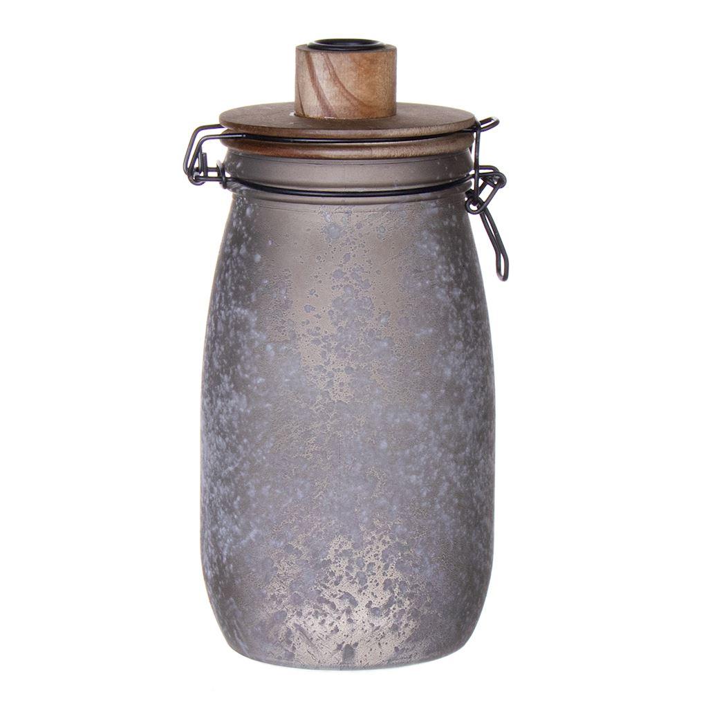 Storage jar with swing top ANNEDORE with dinner candle holder, frosted look, grey, 24,5cm, Ø11,5cm