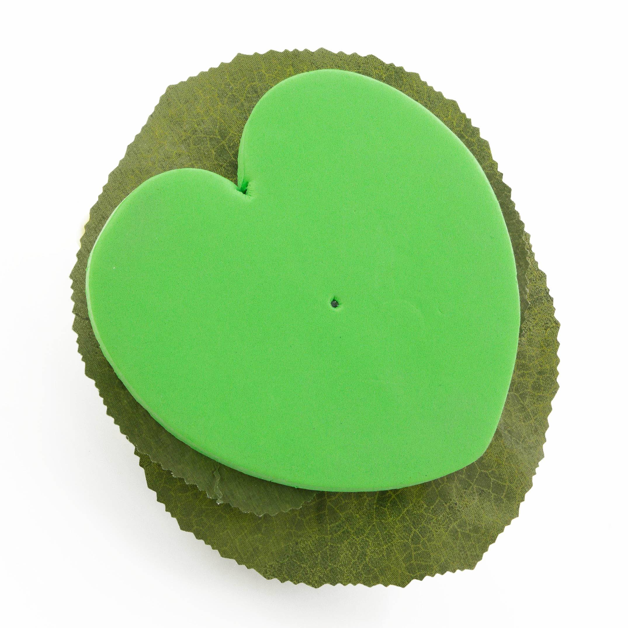 - Consists of two green floating leaves, the heart-shaped cushion-like mat at the bottom ensures the necessary buoyancy