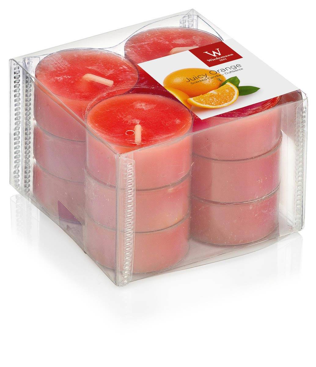 Tea lights ASTRID with fragrance, Juicy Orange, 12 pcs, orange, 0.6"/1,6cm, Ø1.5"/3,7cm, 4h