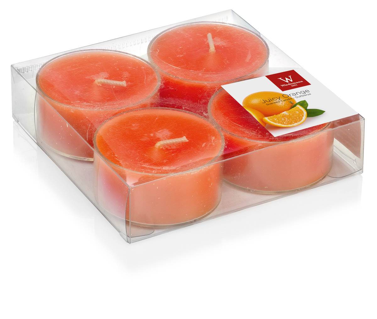 Tea lights ASTRID with fragrance, Juicy Orange, 4 pcs, orange, 0.7"/1,9cm, Ø2.2"/5,7cm, 8h