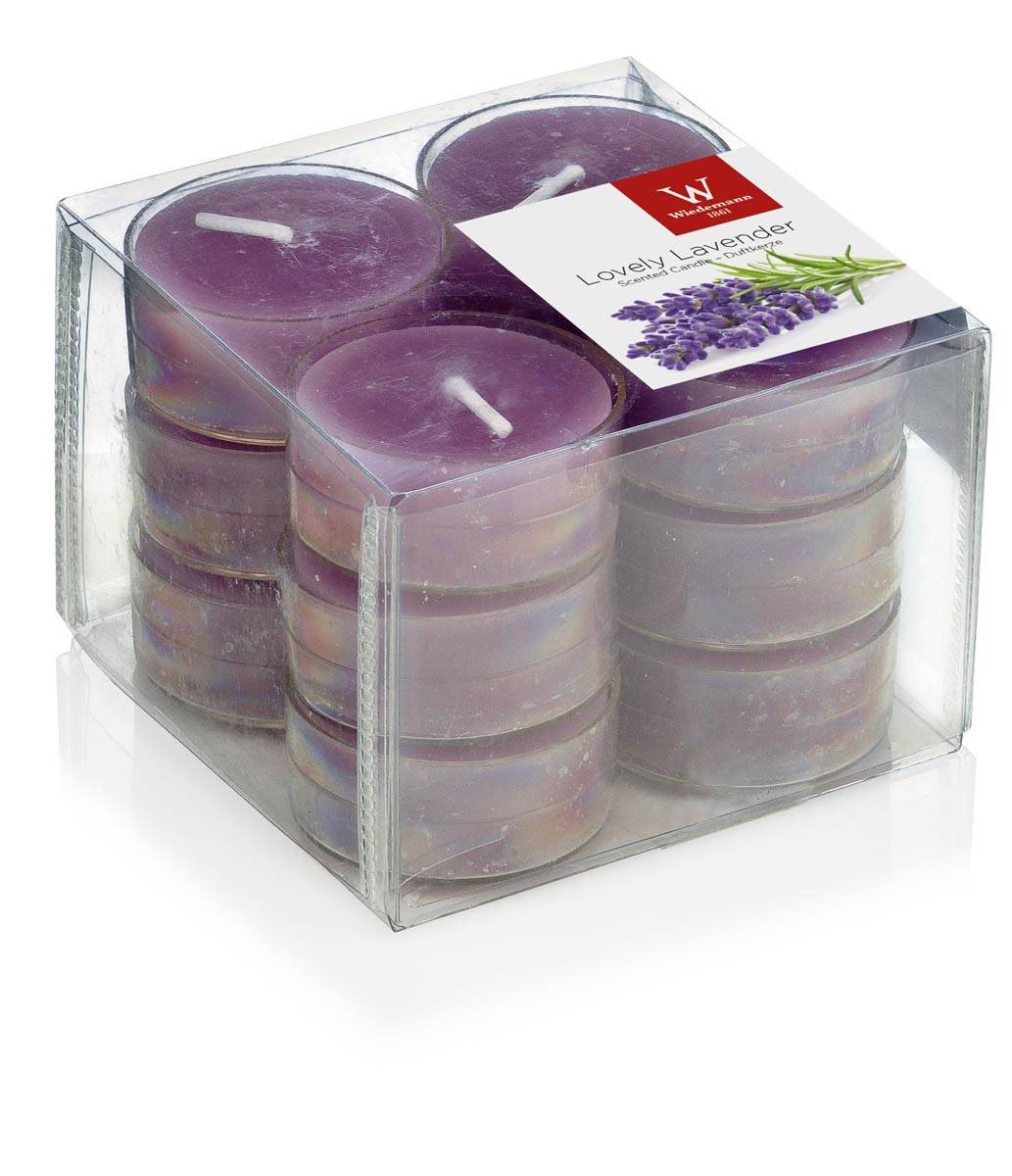 Tea lights ASTRID with fragrance, Lovely Lavender, 12 pcs, violet, 0.6"/1,6cm, Ø1.5"/3,7cm, 4h