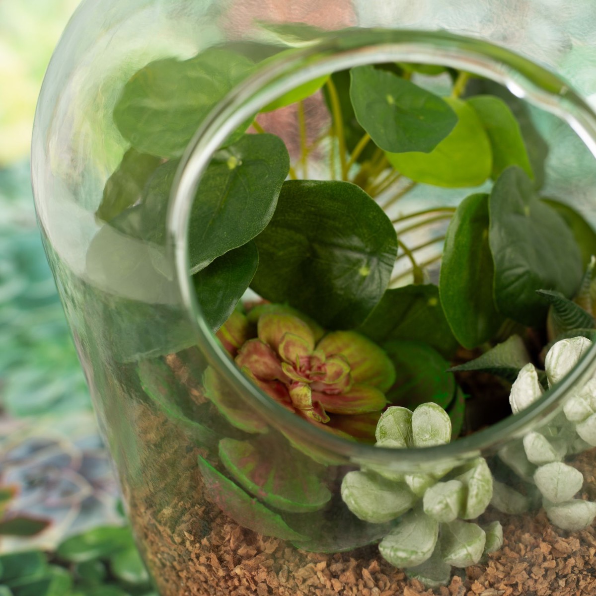 Succulents - an evergreen delight! If you like simple and stylish things, succulents are just the thing for you. These plants look like little works of art and the variety of this type of plant is incredibly large. Since succulents are mostly rather small plants, they also fit everywhere as decoration. Whether in small jars or in bottles, like here, in our look. They always create a natural, fresh mood and visually enhance every corner. Our look is particularly suitable as a decoration for the bathroom. Shop the Look!