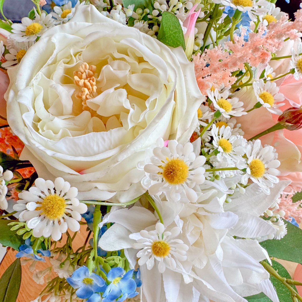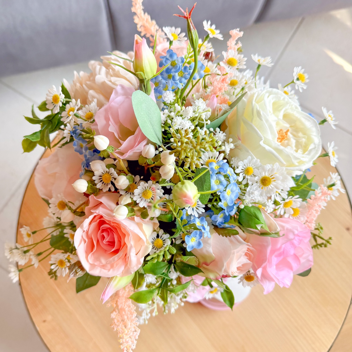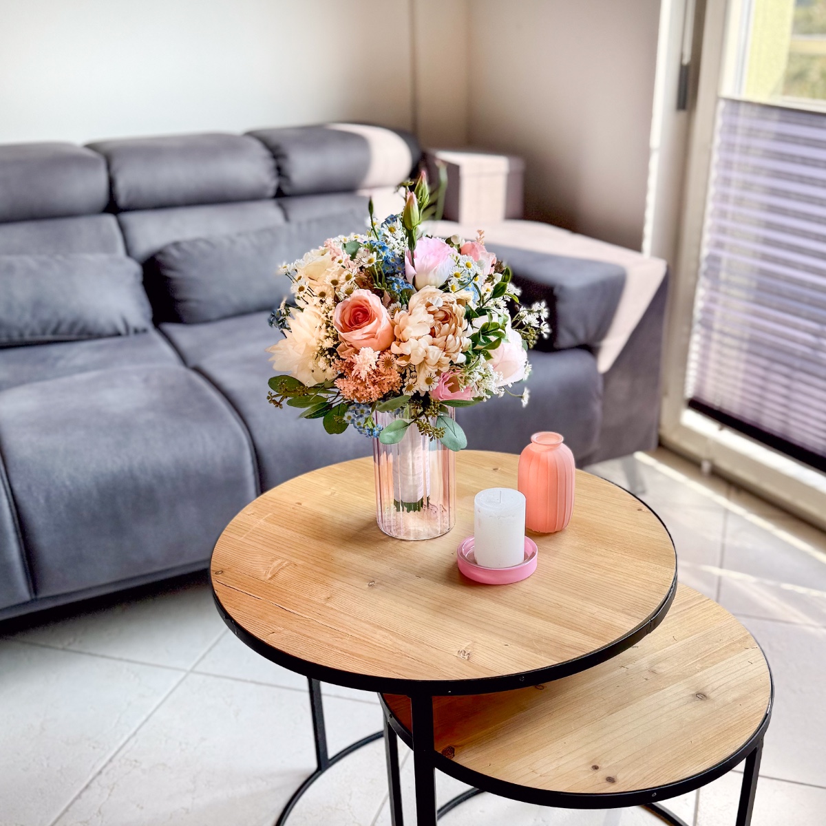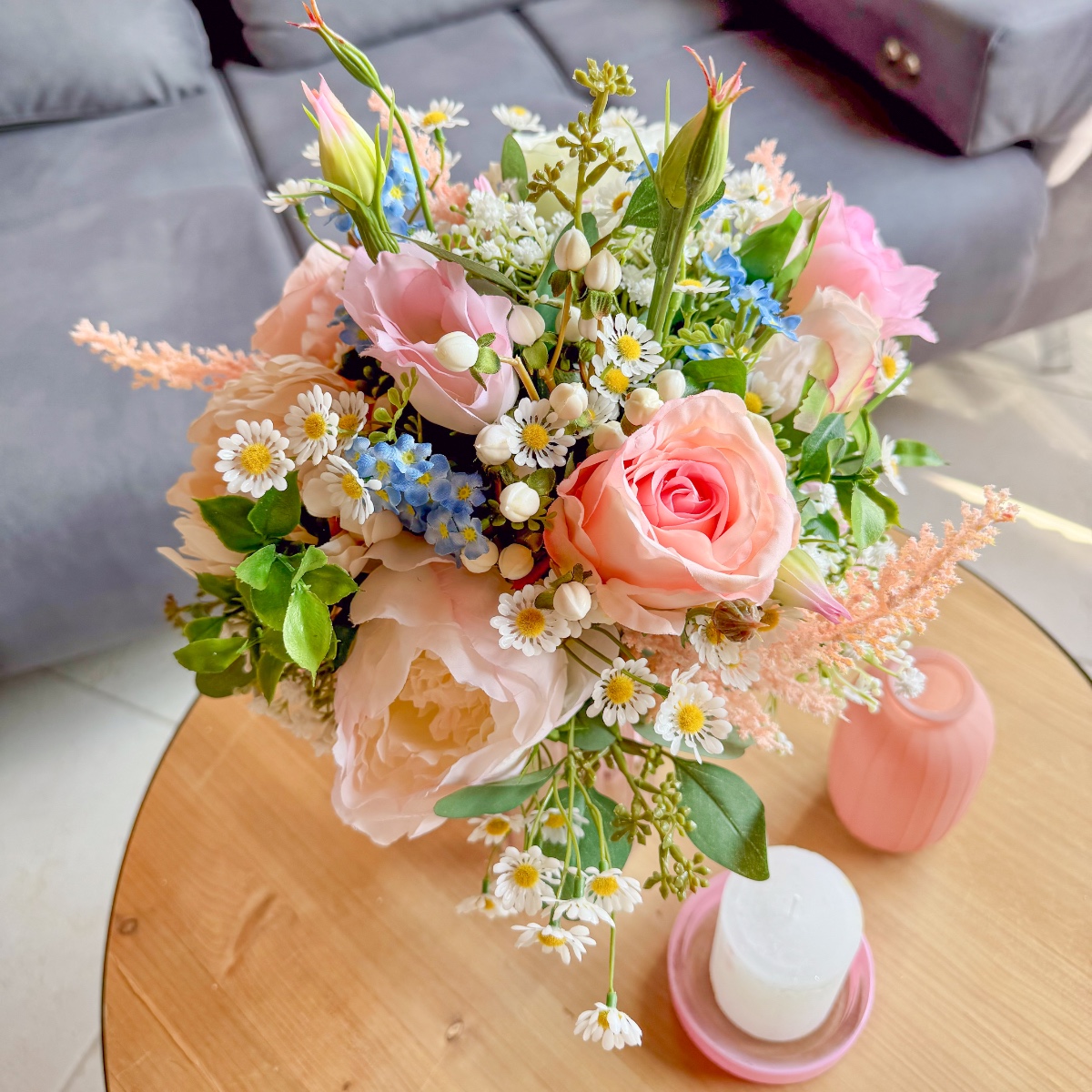 The blossom of elegance – your dream bouquet for that special day! A sophisticated bridal bouquet that combines timeless elegance with romantic delicacy. The magnificent white Cymbidium and Phalaenopsis orchids form the centrepiece of this creation and give the bouquet an exclusive, luxurious look. Delicate pink peonies add a playful touch, while classic white roses symbolise pure purity. Fine gypsophila completes the arrangement, adding lightness and harmony. Let yourself be enchanted by this wedding bouquet and make your day unforgettable! Shop the look!