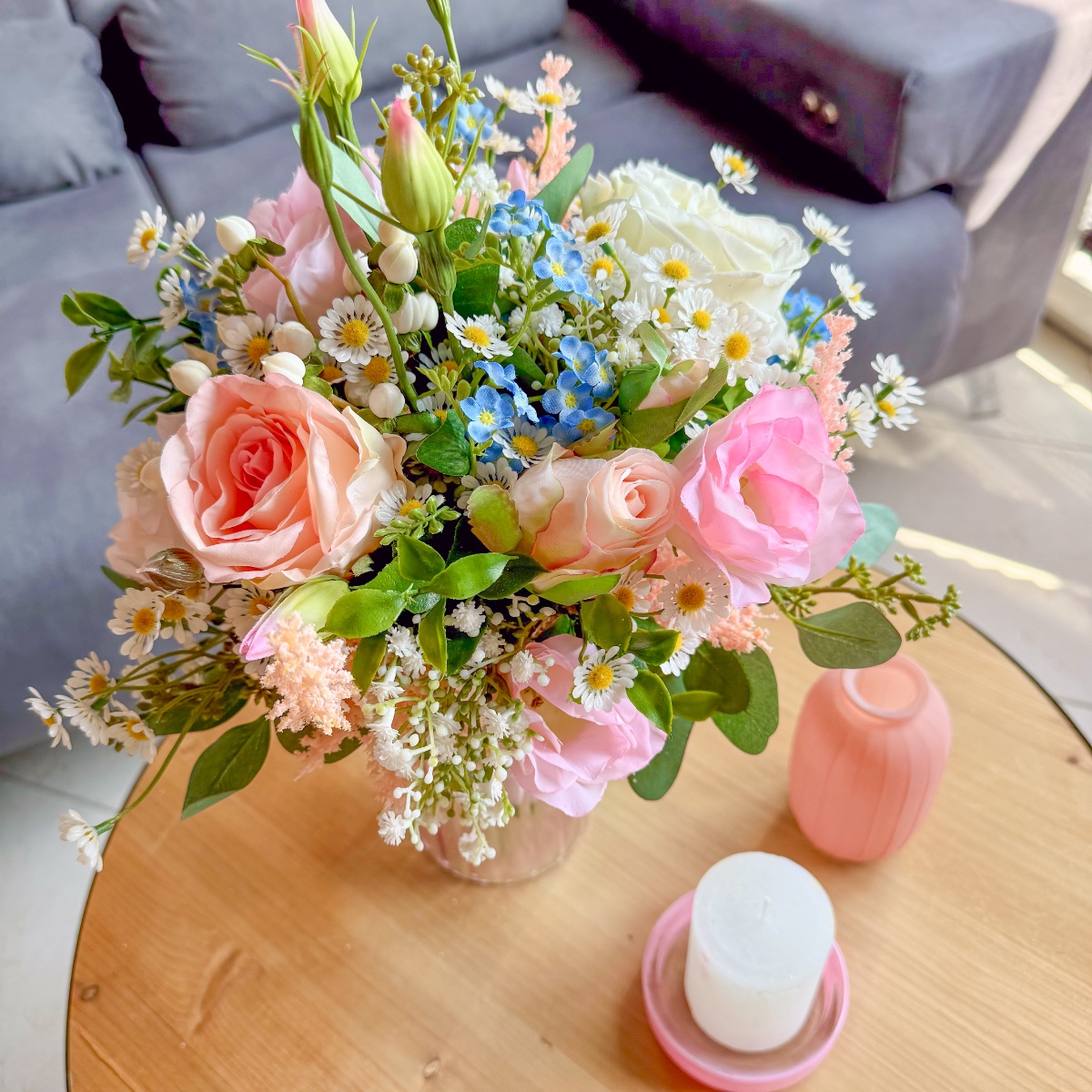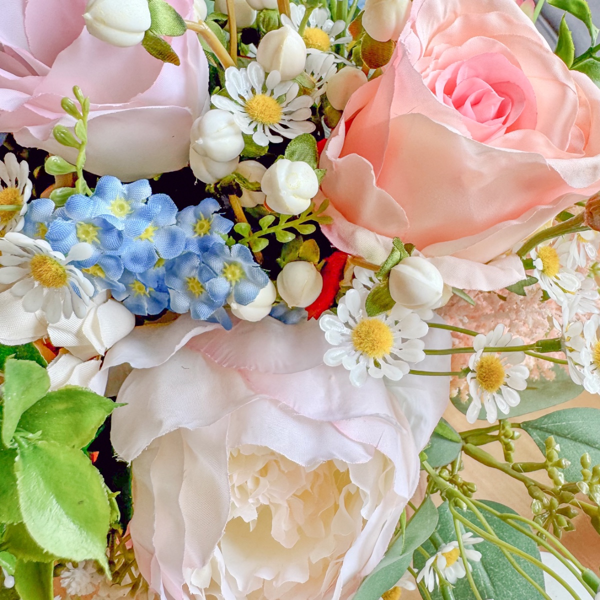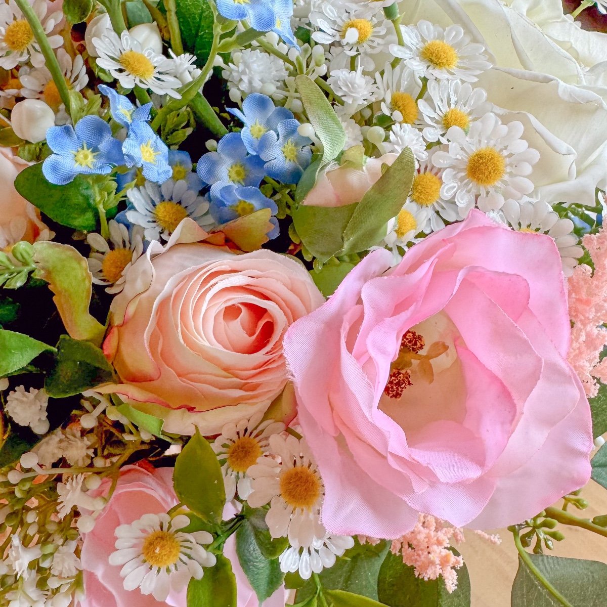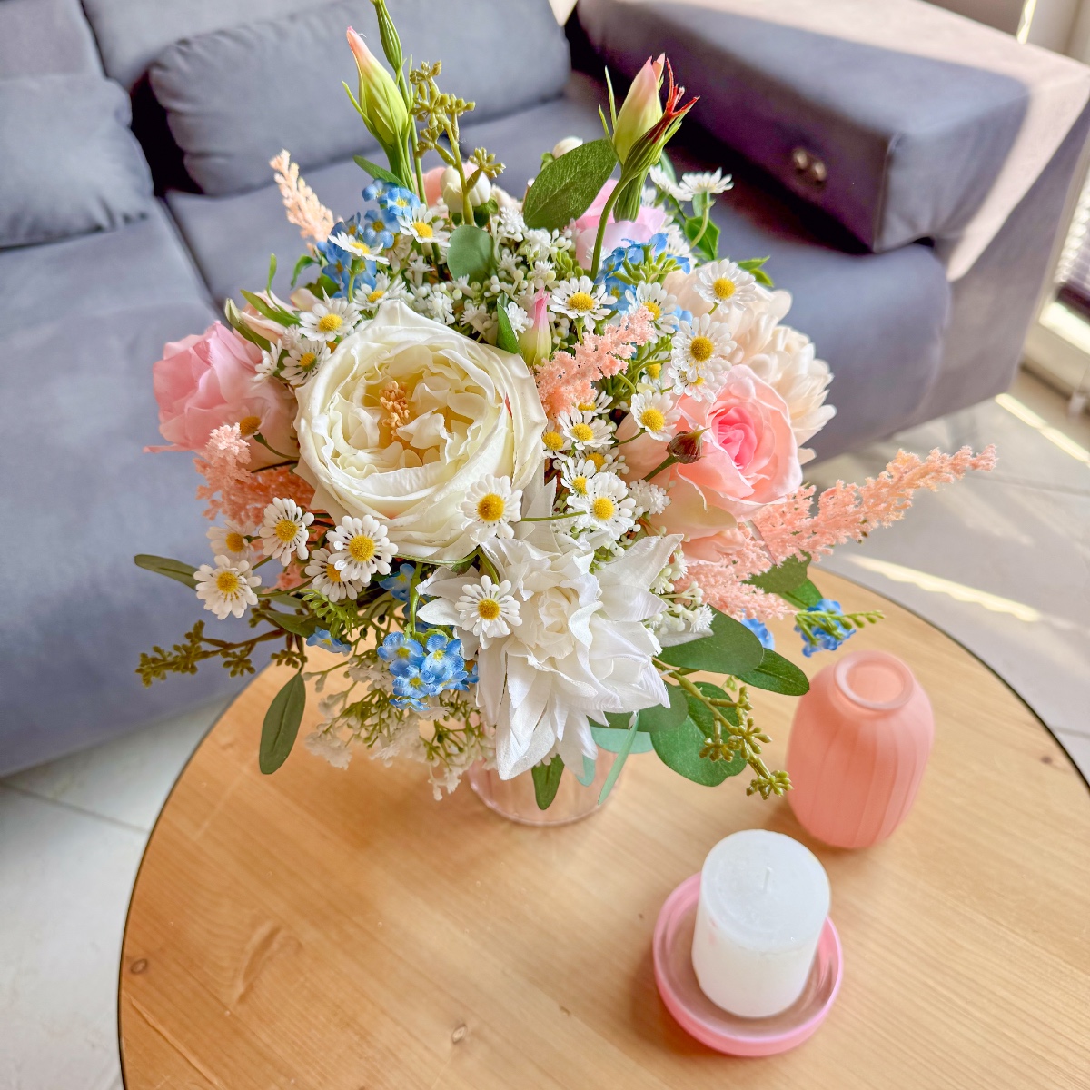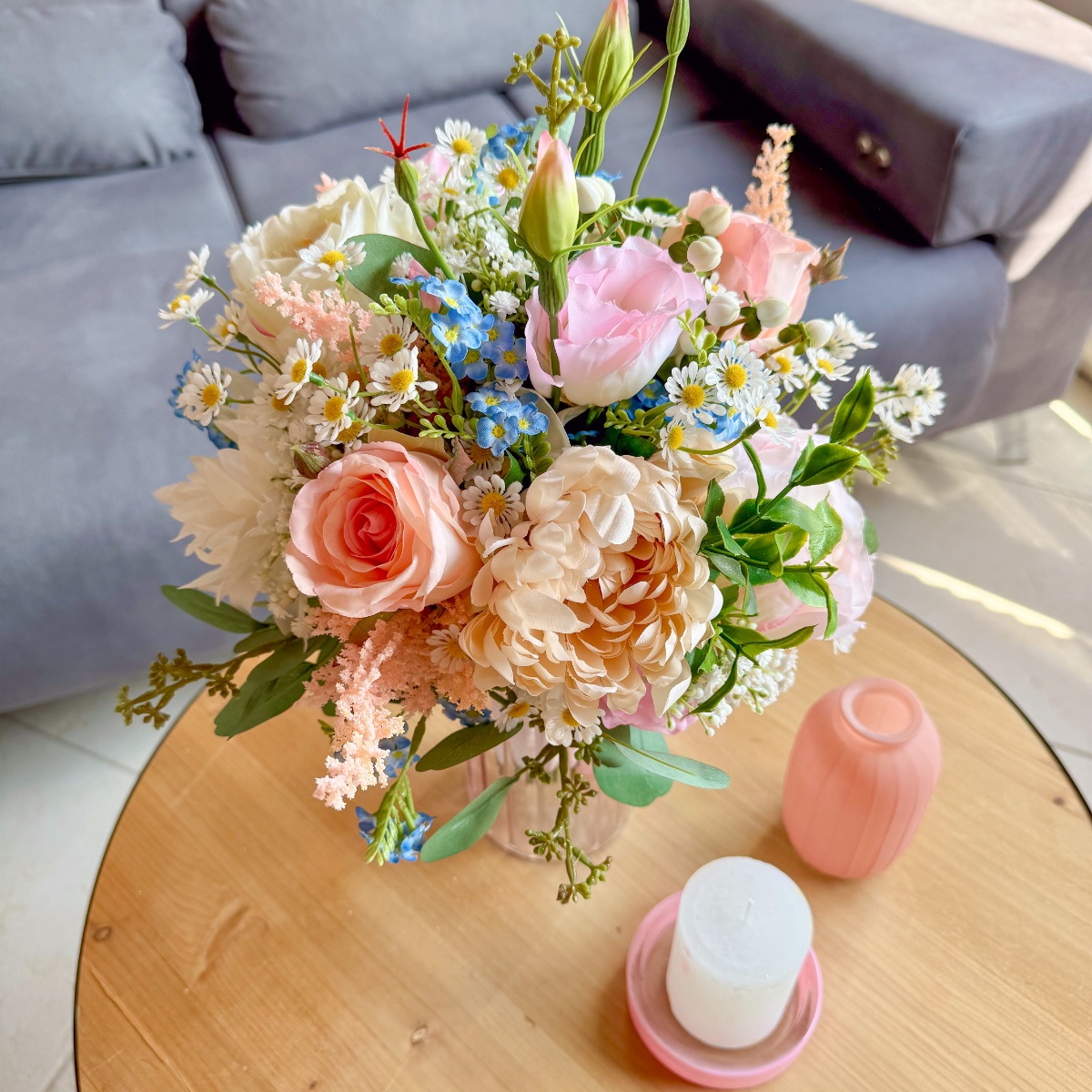 The blossom of elegance – your dream bouquet for that special day! A sophisticated bridal bouquet that combines timeless elegance with romantic delicacy. The magnificent white Cymbidium and Phalaenopsis orchids form the centrepiece of this creation and give the bouquet an exclusive, luxurious look. Delicate pink peonies add a playful touch, while classic white roses symbolise pure purity. Fine gypsophila completes the arrangement, adding lightness and harmony. Let yourself be enchanted by this wedding bouquet and make your day unforgettable! Shop the look!