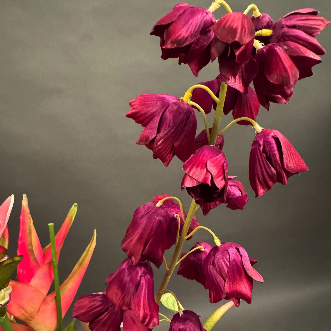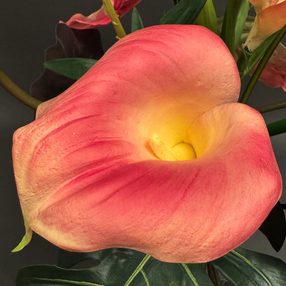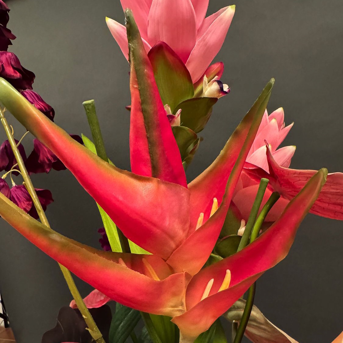 Flower show! This tropical bouquet caught Josef's eye during an appointment. He asked us to recreate the summery arrangement, which is particularly reminiscent of tropical gardens or faraway countries. The bouquet is truly eye-catching and creates a real holiday atmosphere. Exotic flowers such as anthuriums and heliconias stand out in particular and emphasise the asymmetrical design of the ensemble. Perfect as an eye-catcher in modern rooms or as a gift for people with a penchant for the extraordinary. Shop the look!
