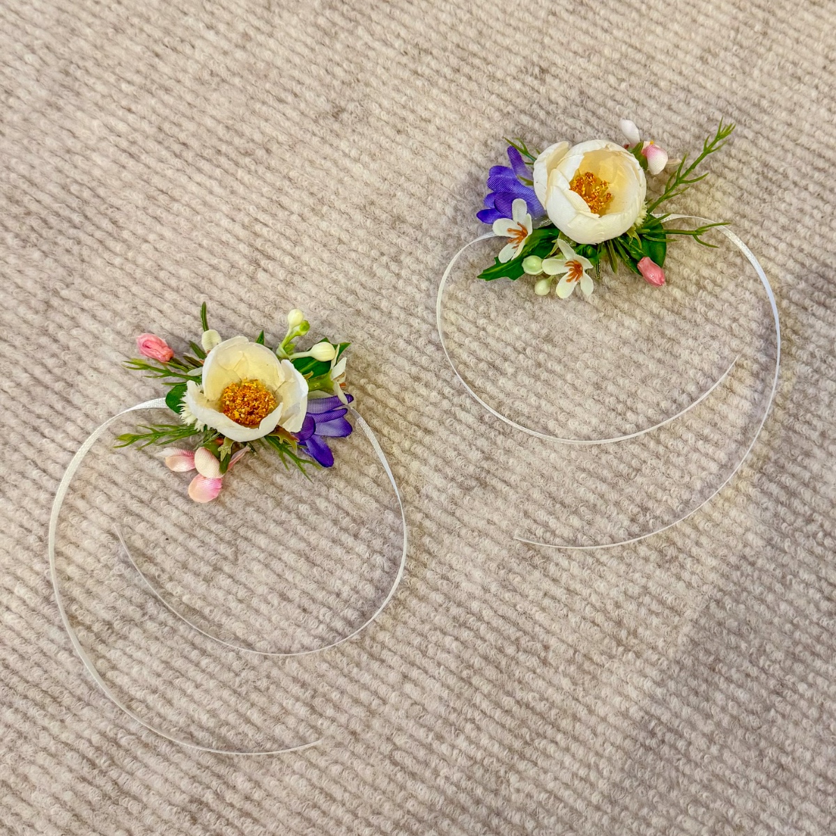 Tuscan Meadow – Bridal bouquet creation with wristbands and corsages – Customer request from Corinna