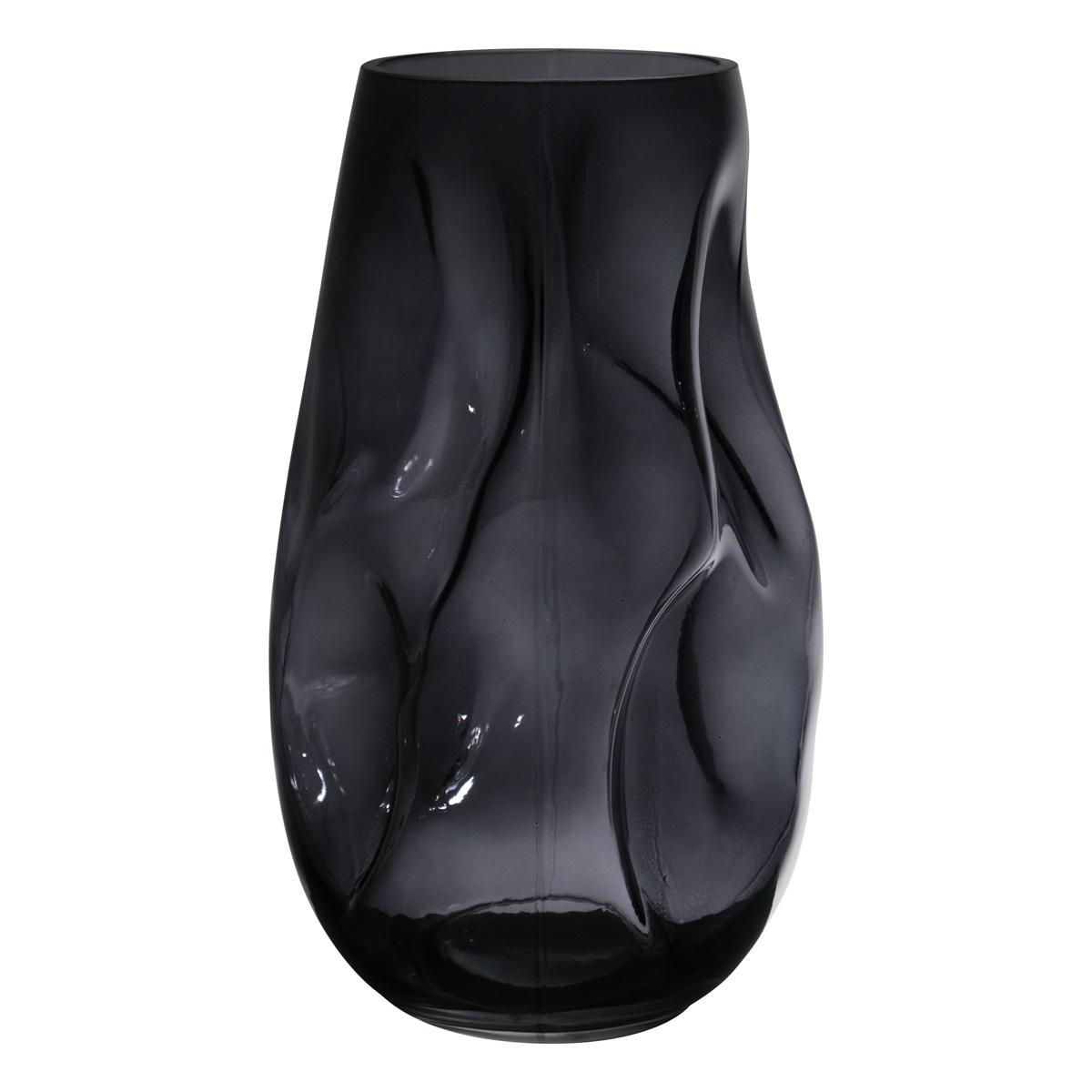 Unshaped vase MADALENA made of glass, with dents, grey-clear, 28cm, Ø14,5cm