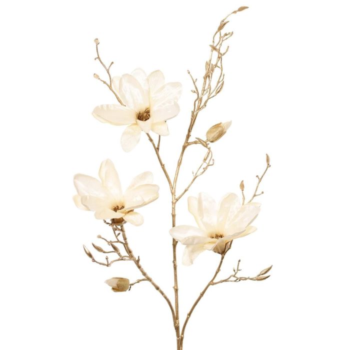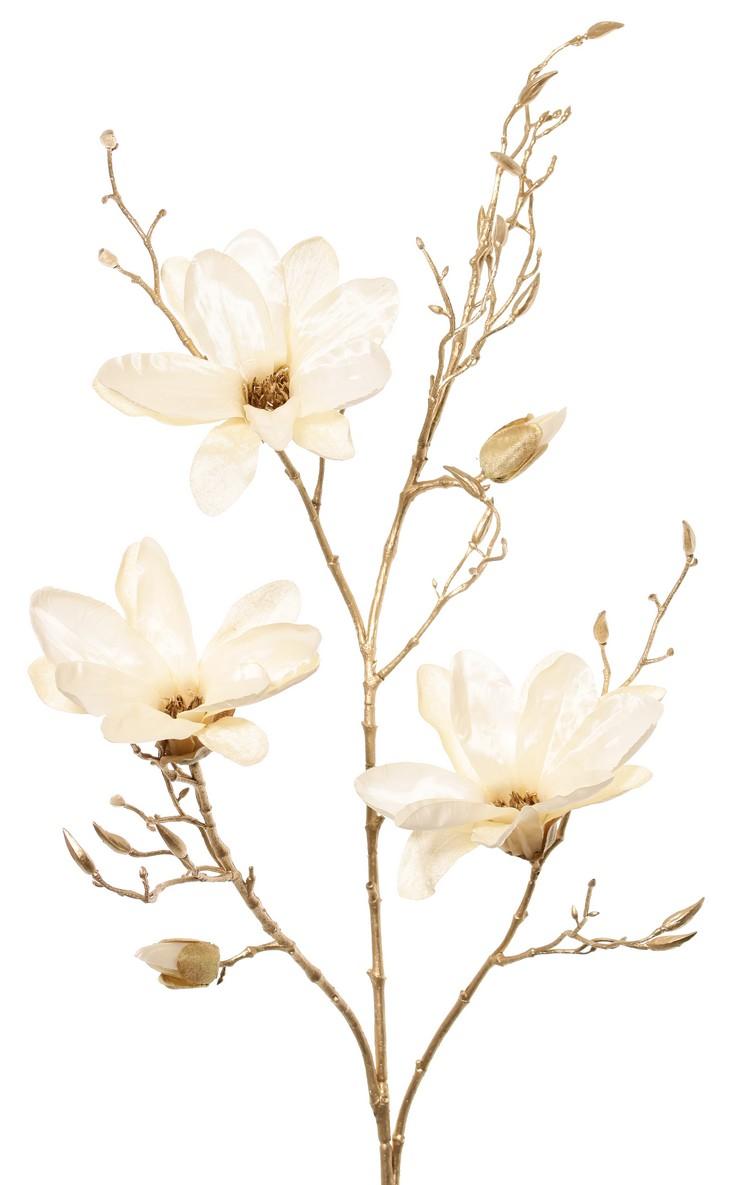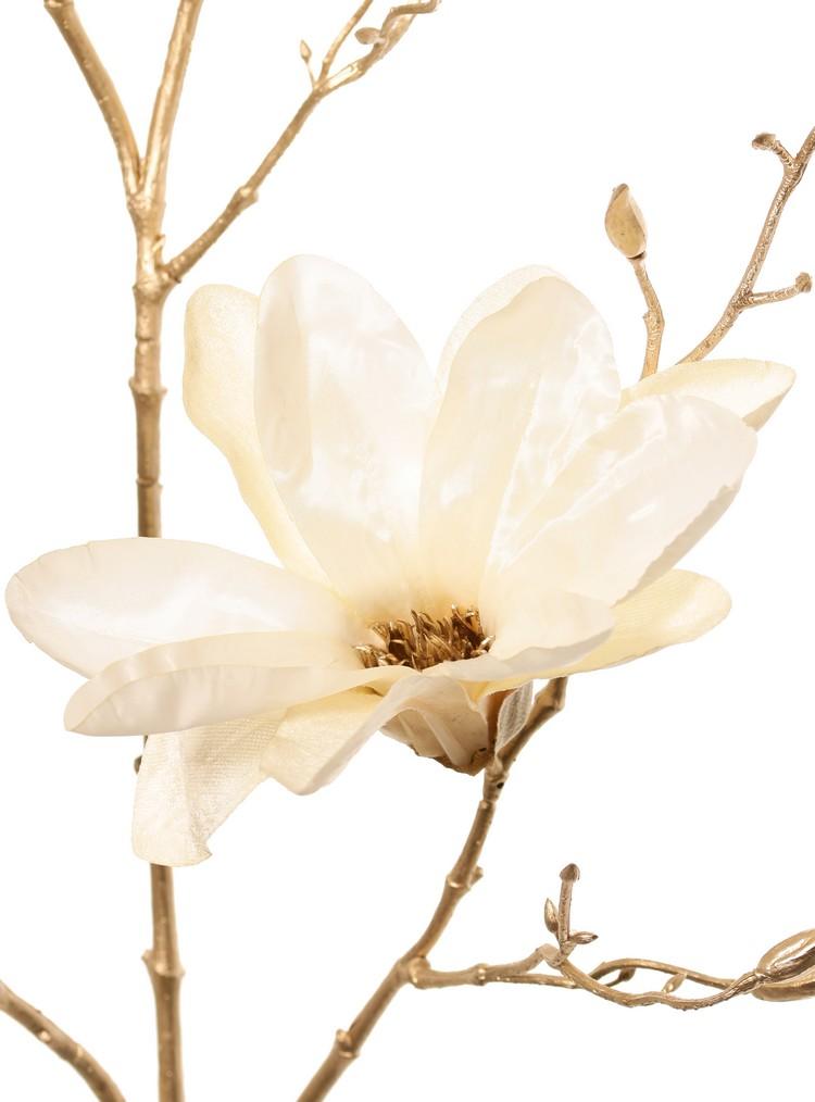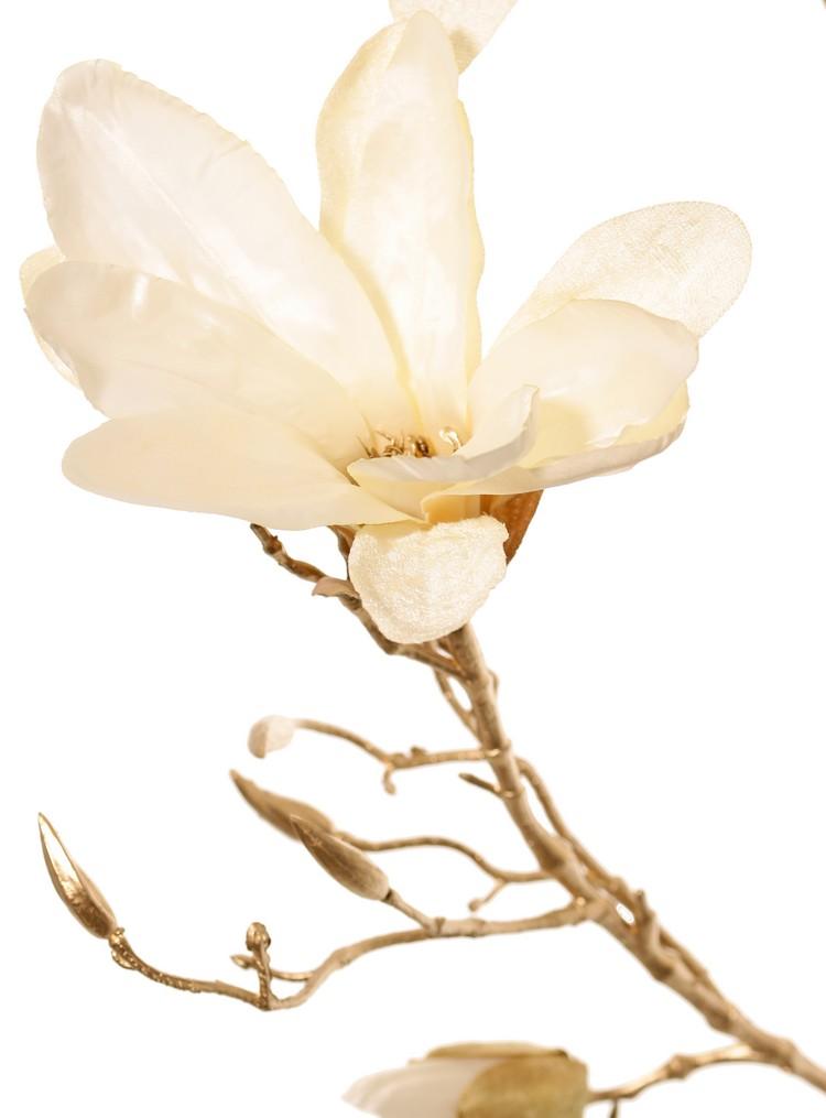 Velvet magnolia branch LEAFY, cream-gold, 4ft/115cm
