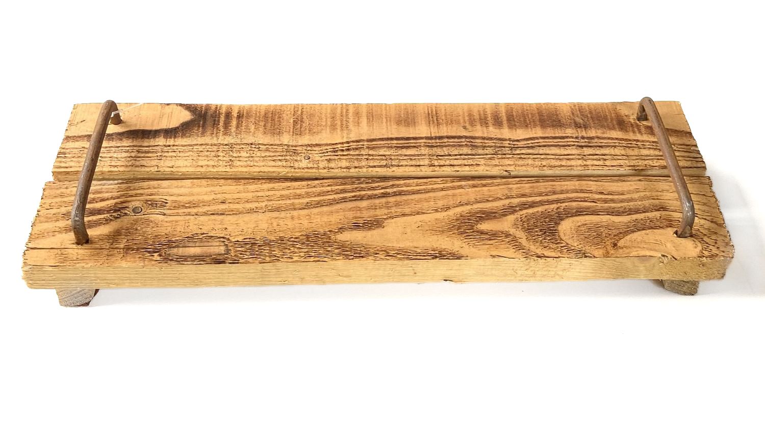 Vintage decorative wooden tray FENRIK with handle, natural flamed, 20"x5.5"x1.6"/50x14x4cm