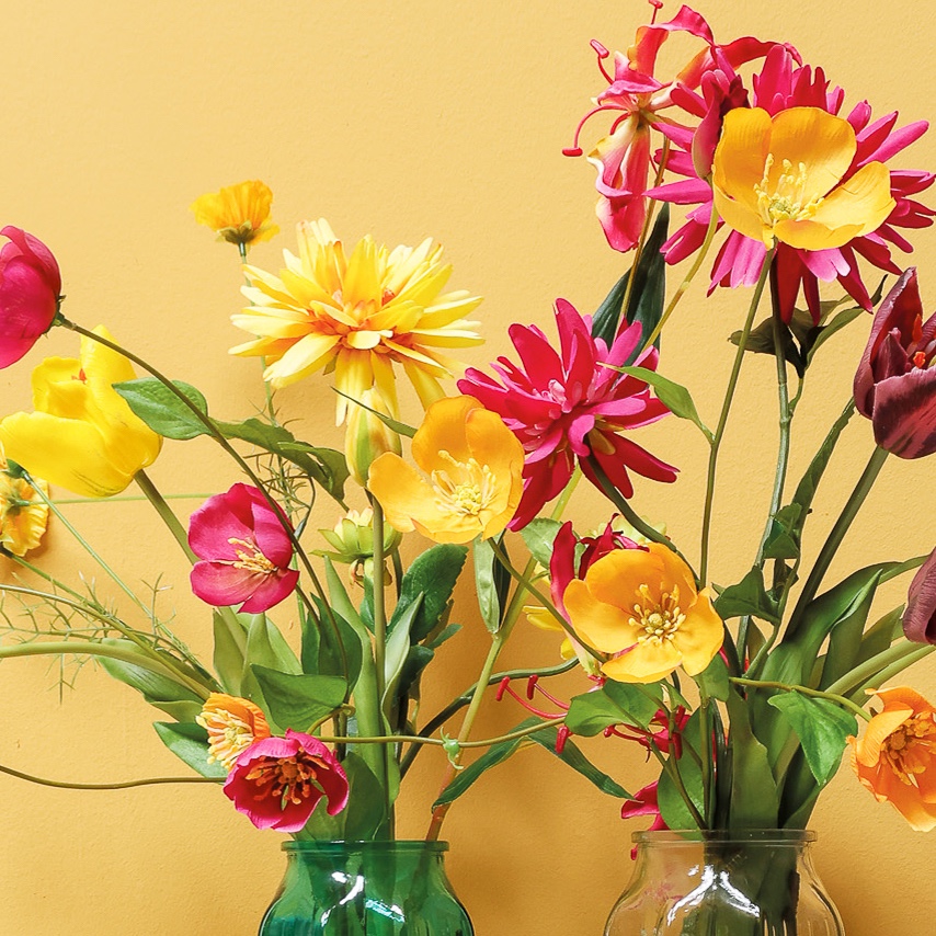 Viva la Vida, Viva la Fiesta, Viva la Noche! The name says it all: this look has everything you need to celebrate life and summer to the fullest, with all its festivals and balmy nights. Whether for everyday use at home, as decoration at a summer party or for a night out, bright dahlias, exotic parrot tulips and gloriosa, cosmos and buttercups fill the elegant glass table vases and exude pure joie de vivre! Shop the look!
