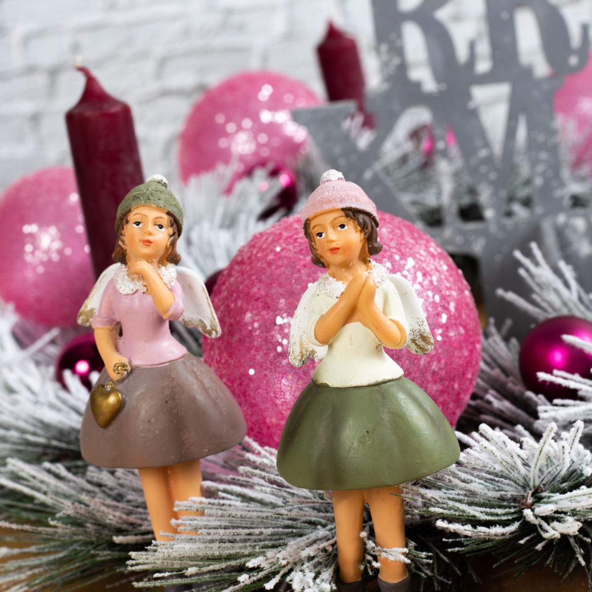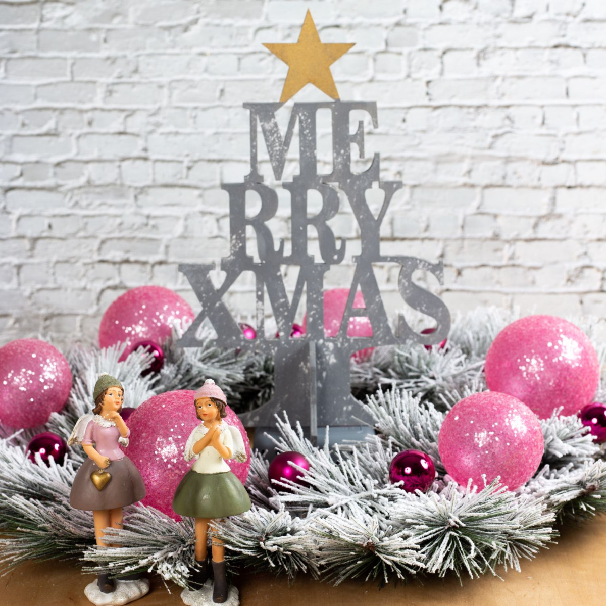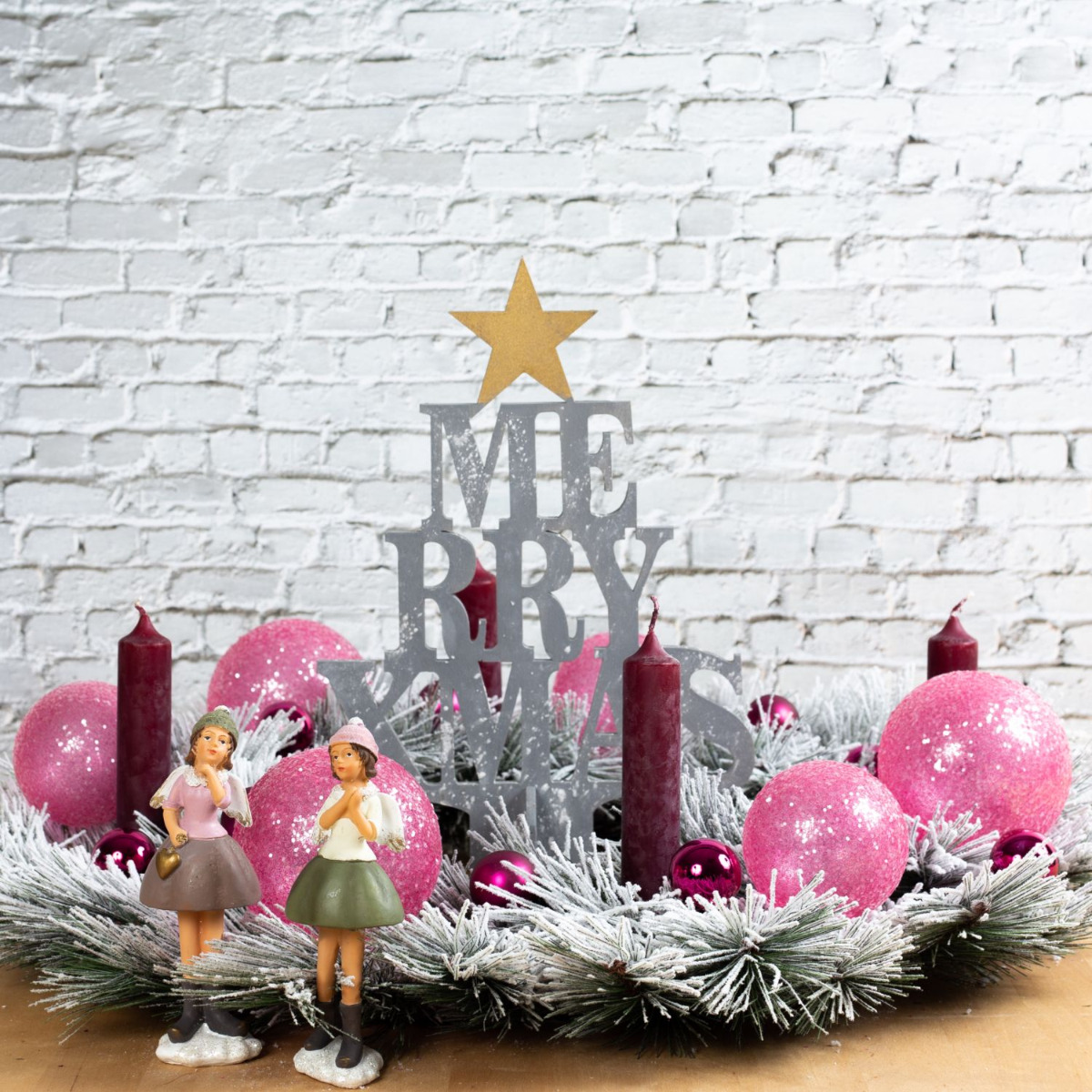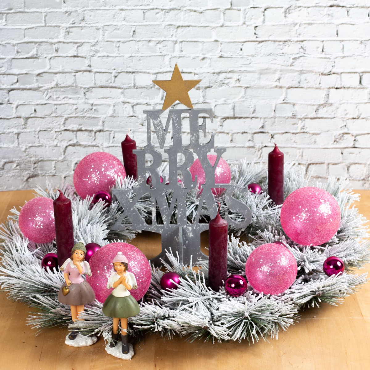 Welcome Advent with pink baubles! The colour pink enhances positive feelings and calms aggression and violence, making it ideal for the Advent season. The baubles combined with the snow-covered wreath create a fantastic colour combination. Add a few figures and your decoration is complete. Shop the look!
